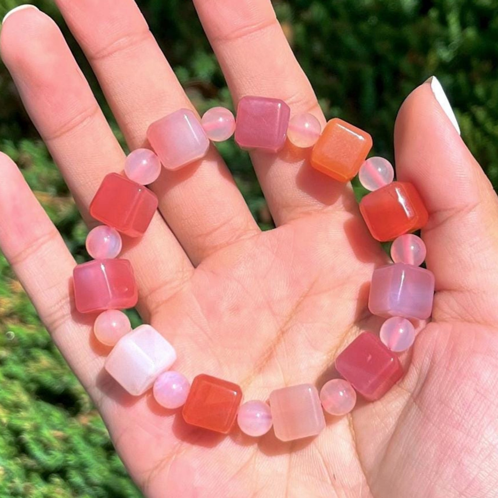 Achat Perlenarmband Quadrat Pink / Rosa Armband handmade Armband handgemacht Edelstein Armband