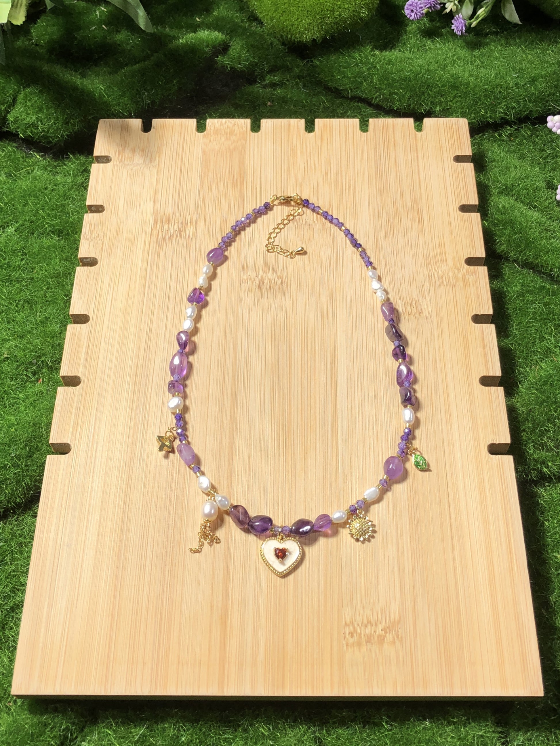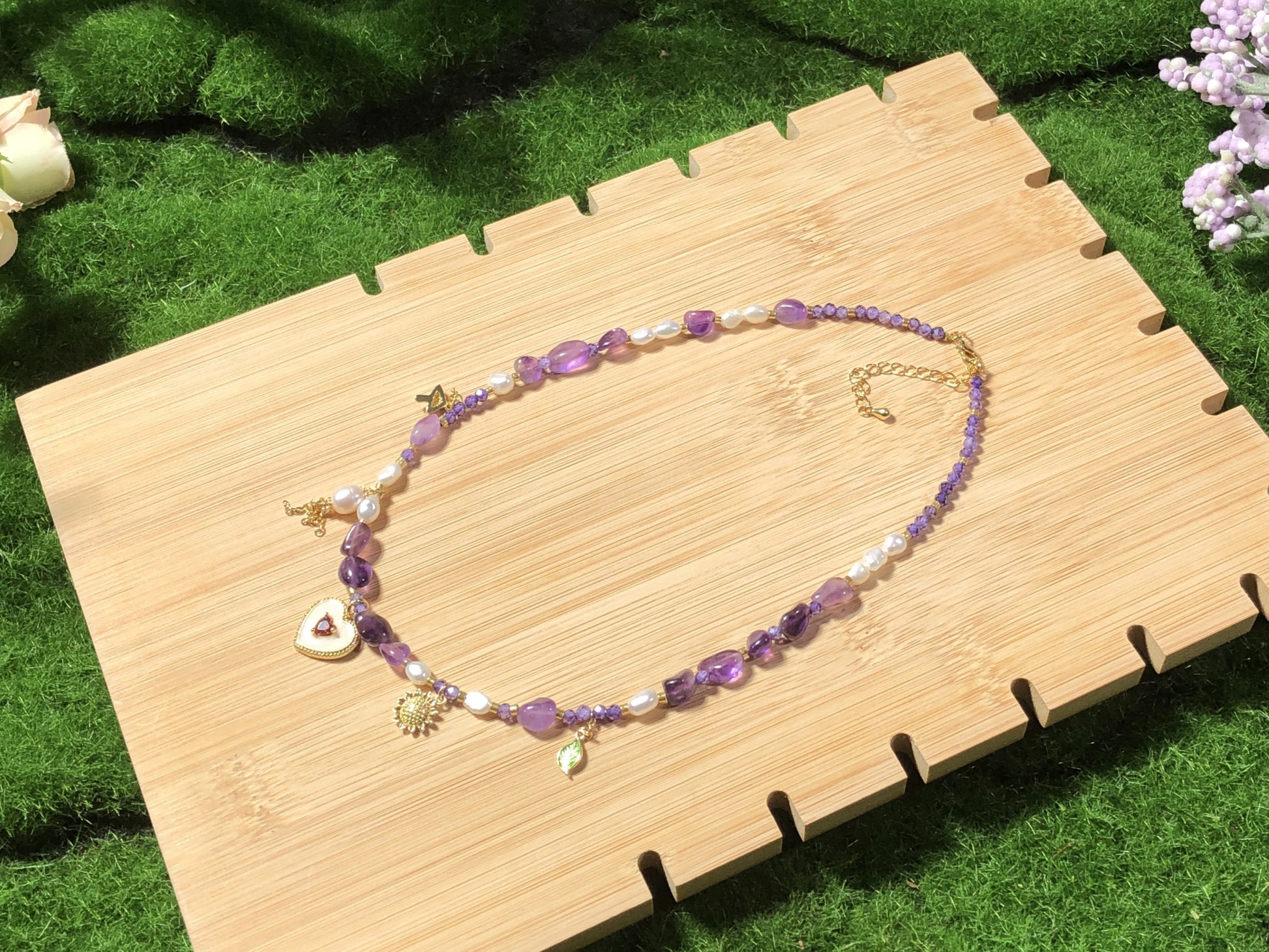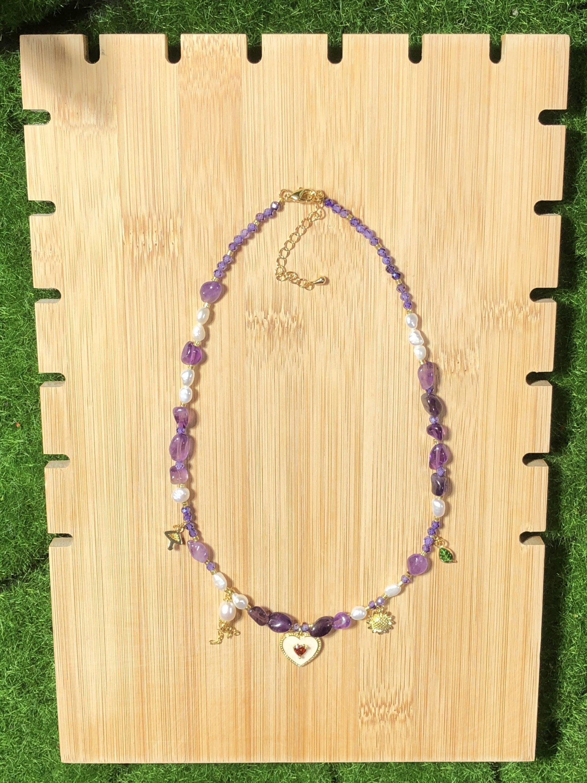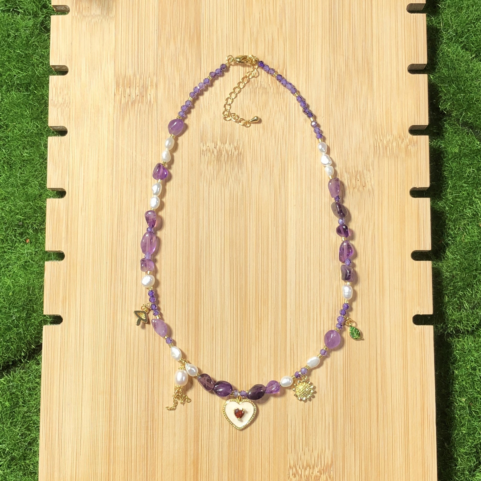 Amethyst Halskette Perlen Süßwasserperlen Halskette Edelstahl 14K vergoldet Edeltstein Halskette