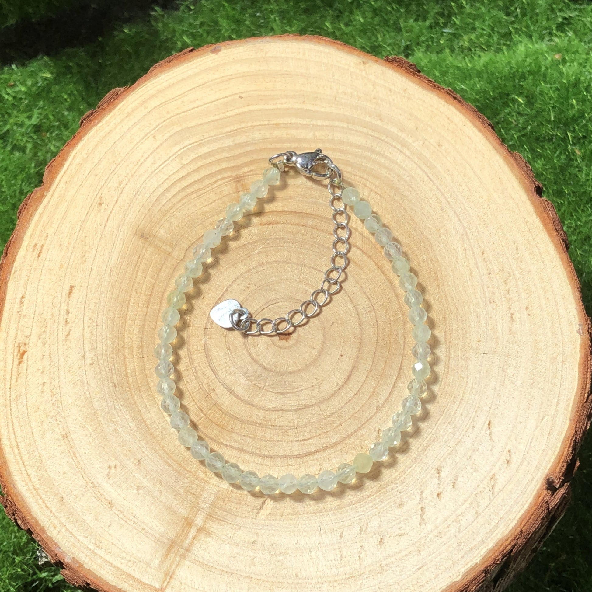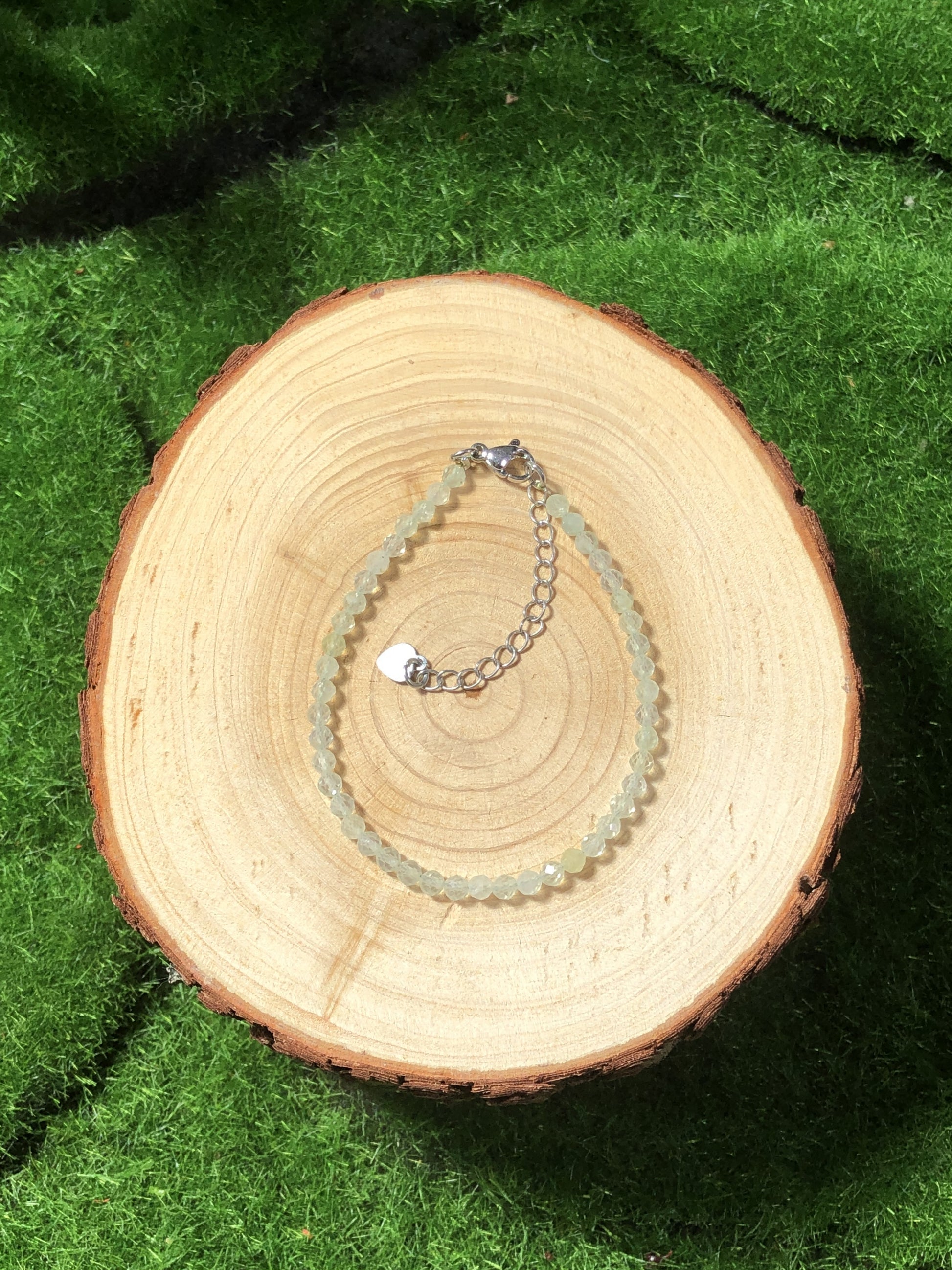 Armband aus natürlichem Prehnit, Kette aus 925er Sterlingsilber, handgefertigt.