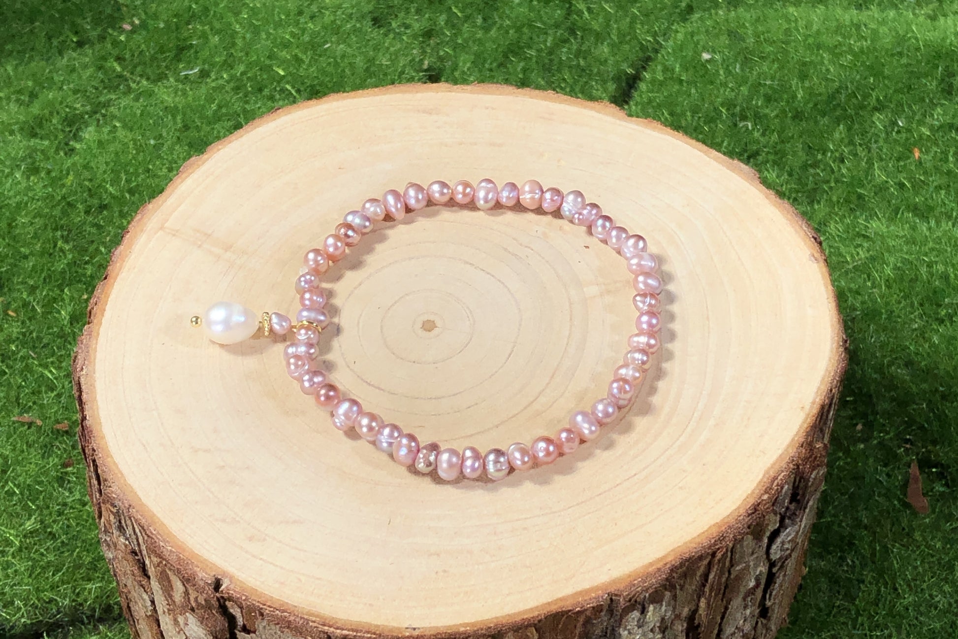Armband aus natürlichen violetten Süßwasserperlen, handgefertigt.