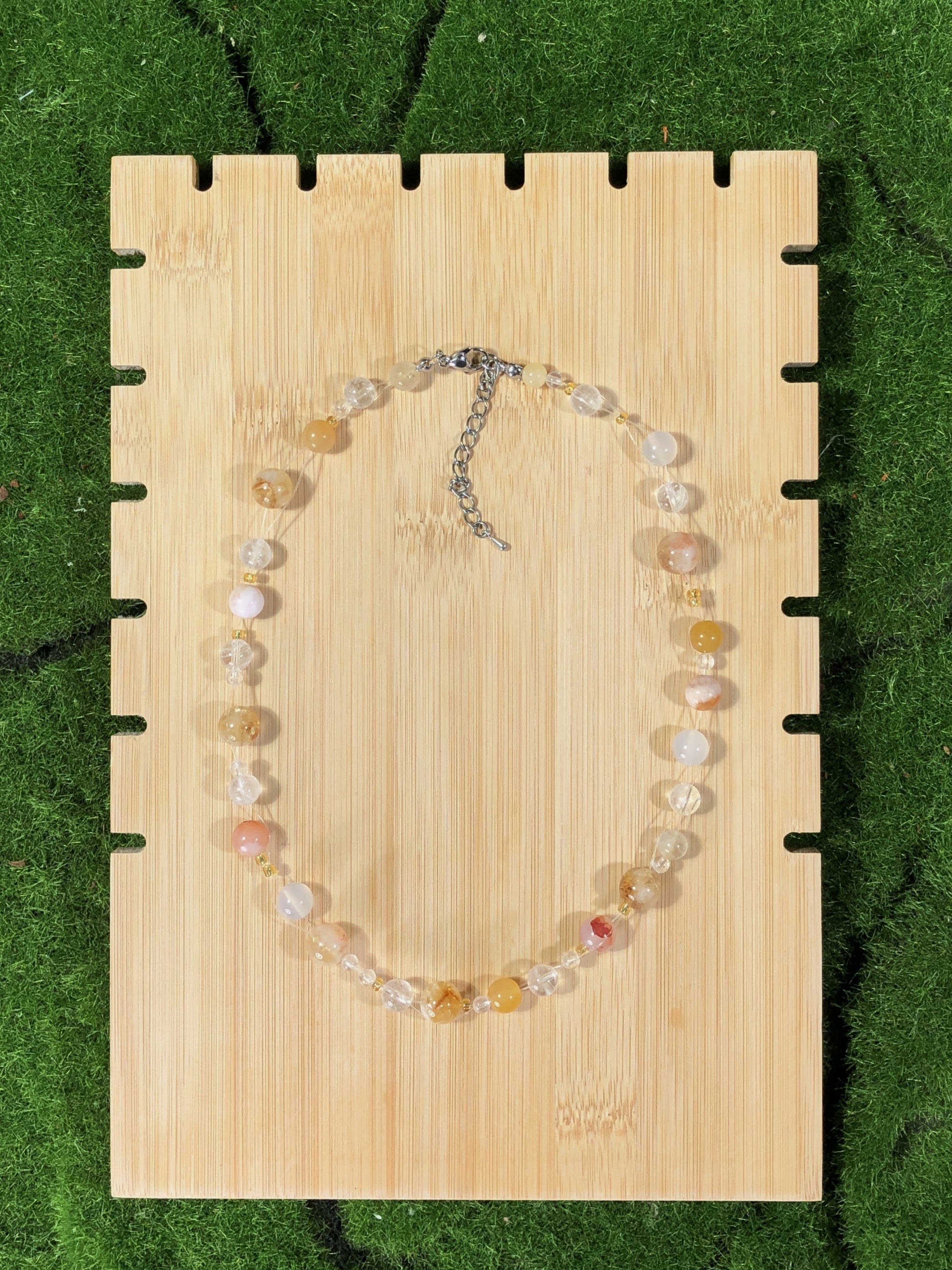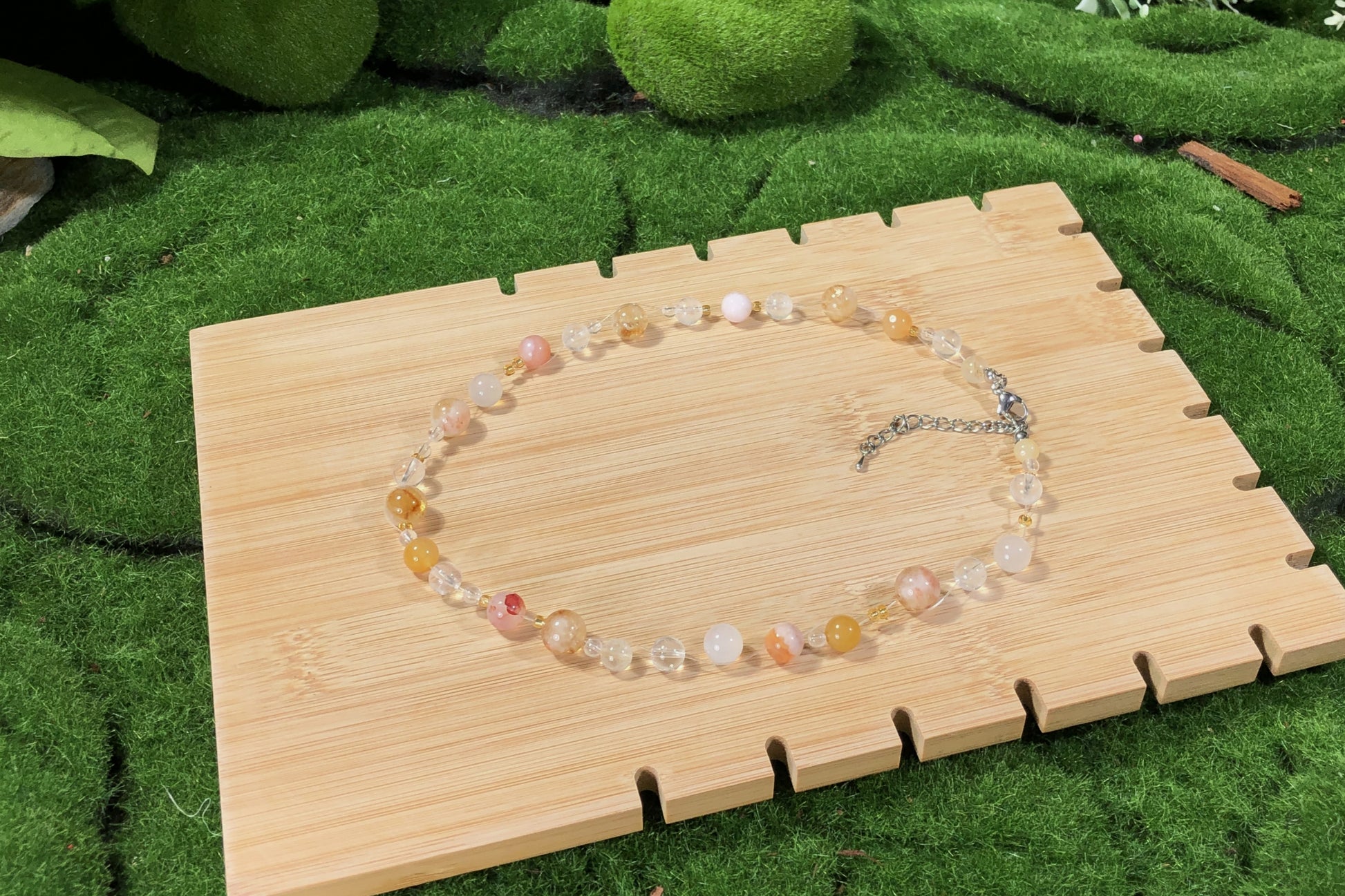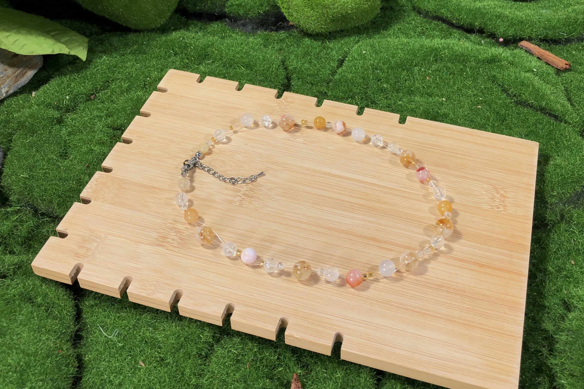Die Natursteine verleihen jedem Artikel einen einzigartigen Charakter. Obwohl ich nur die qualitativ besten Steine auswähle, bringen ihre natürlichen Texturen und Formen ihre Eigenheiten mit sich. Es ist wichtig zu wissen, dass die Natursteine keine 100% perfekte Form und Klarheit haben werden.