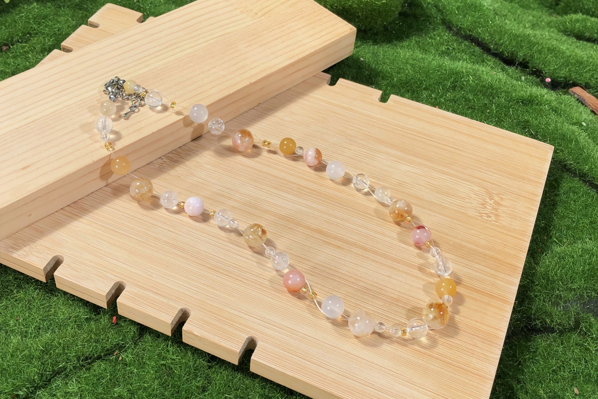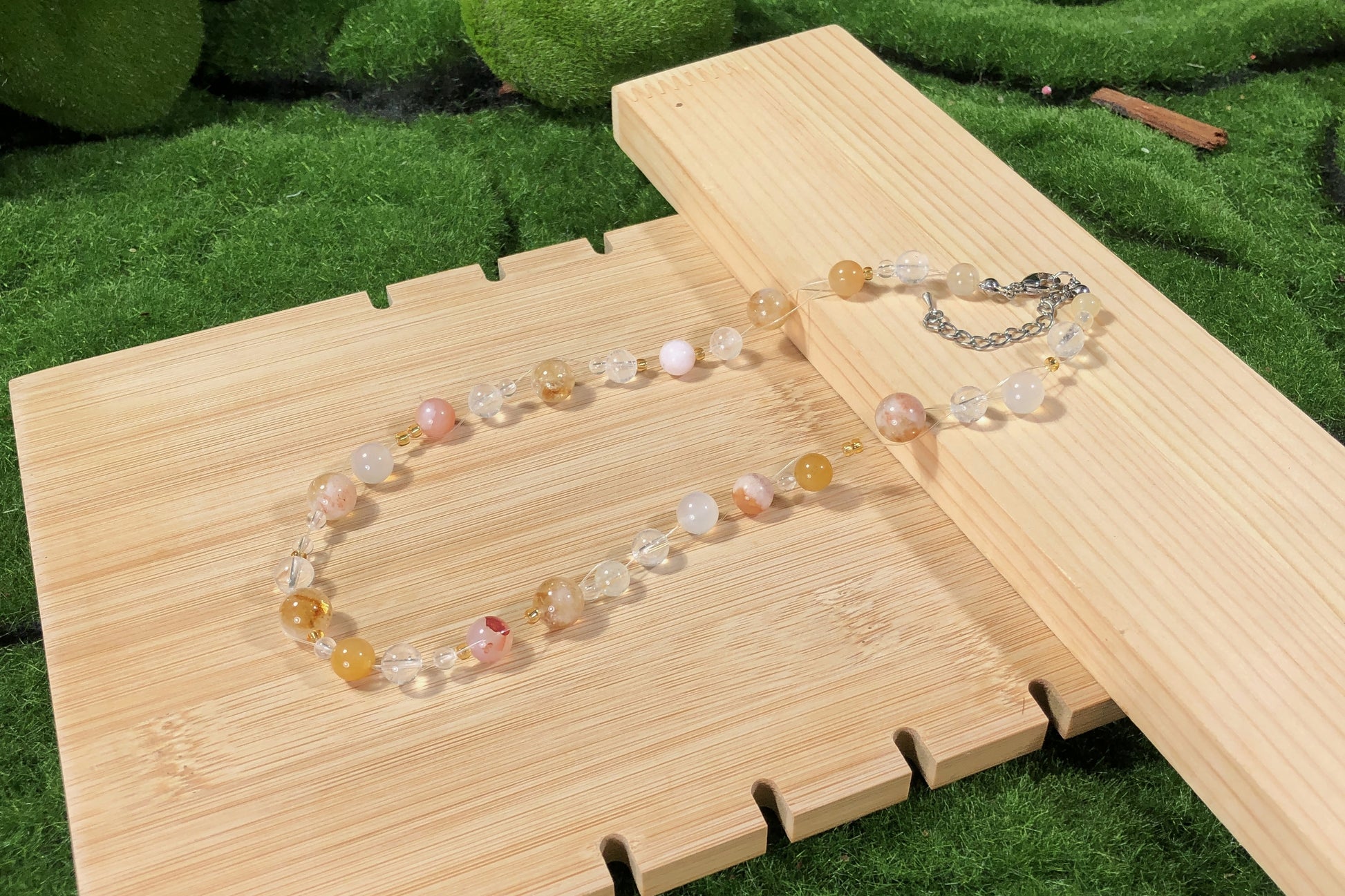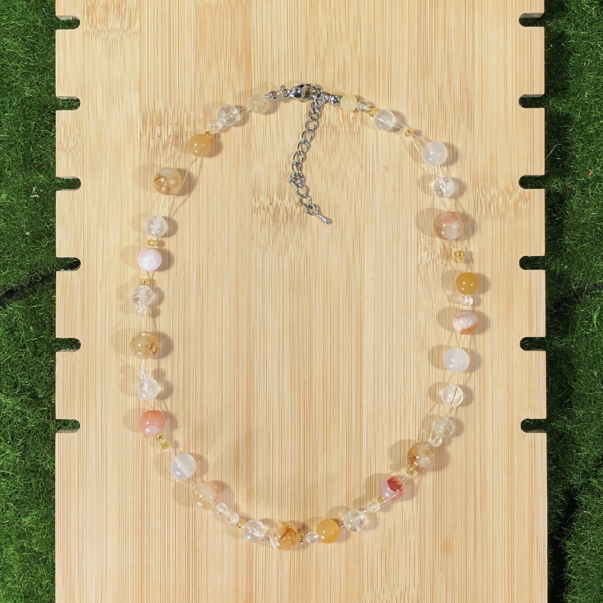 Die Natursteine verleihen jedem Artikel einen einzigartigen Charakter. Obwohl ich nur die qualitativ besten Steine auswähle, bringen ihre natürlichen Texturen und Formen ihre Eigenheiten mit sich. Es ist wichtig zu wissen, dass die Natursteine keine 100% perfekte Form und Klarheit haben werden.