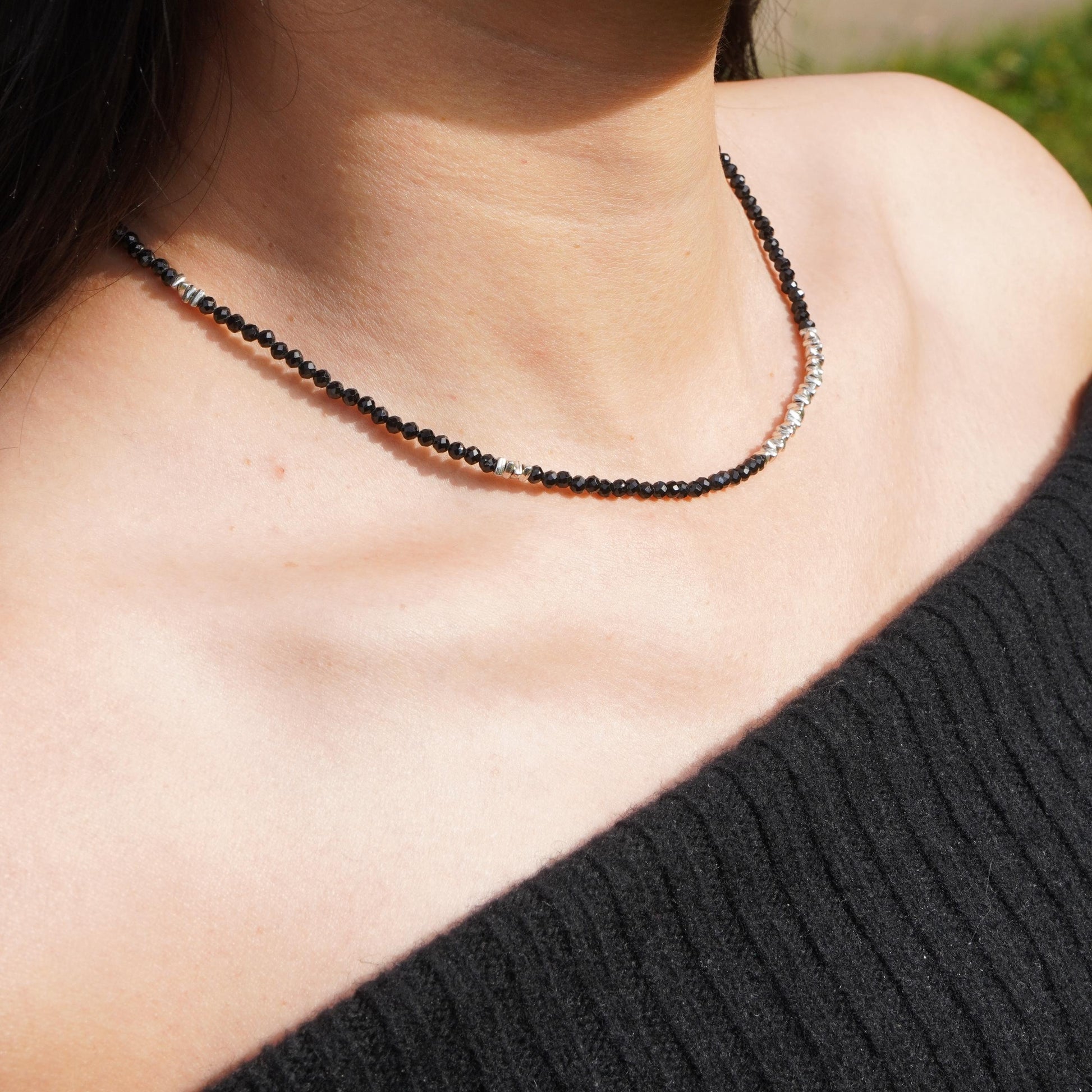 Feine Halskette Schwarzer Spinell Halskette Kupfer Edelstein Halskette Handmade Handgefertigte Halskette