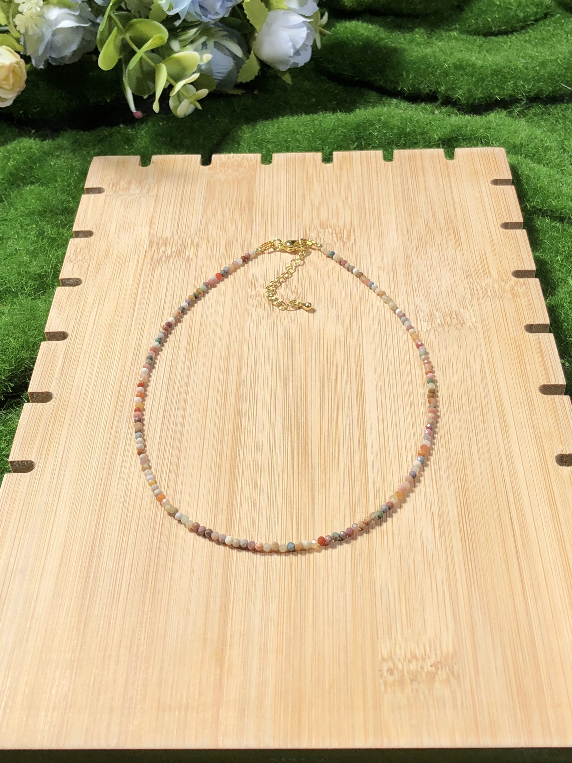 Die Natursteine verleihen jedem Artikel einen einzigartigen Charakter. Obwohl ich nur die qualitativ besten Steine auswähle, bringen ihre natürlichen Texturen und Formen ihre Eigenheiten mit sich. Es ist wichtig zu wissen, dass die Natursteine keine 100% perfekte Form und Klarheit haben werden.