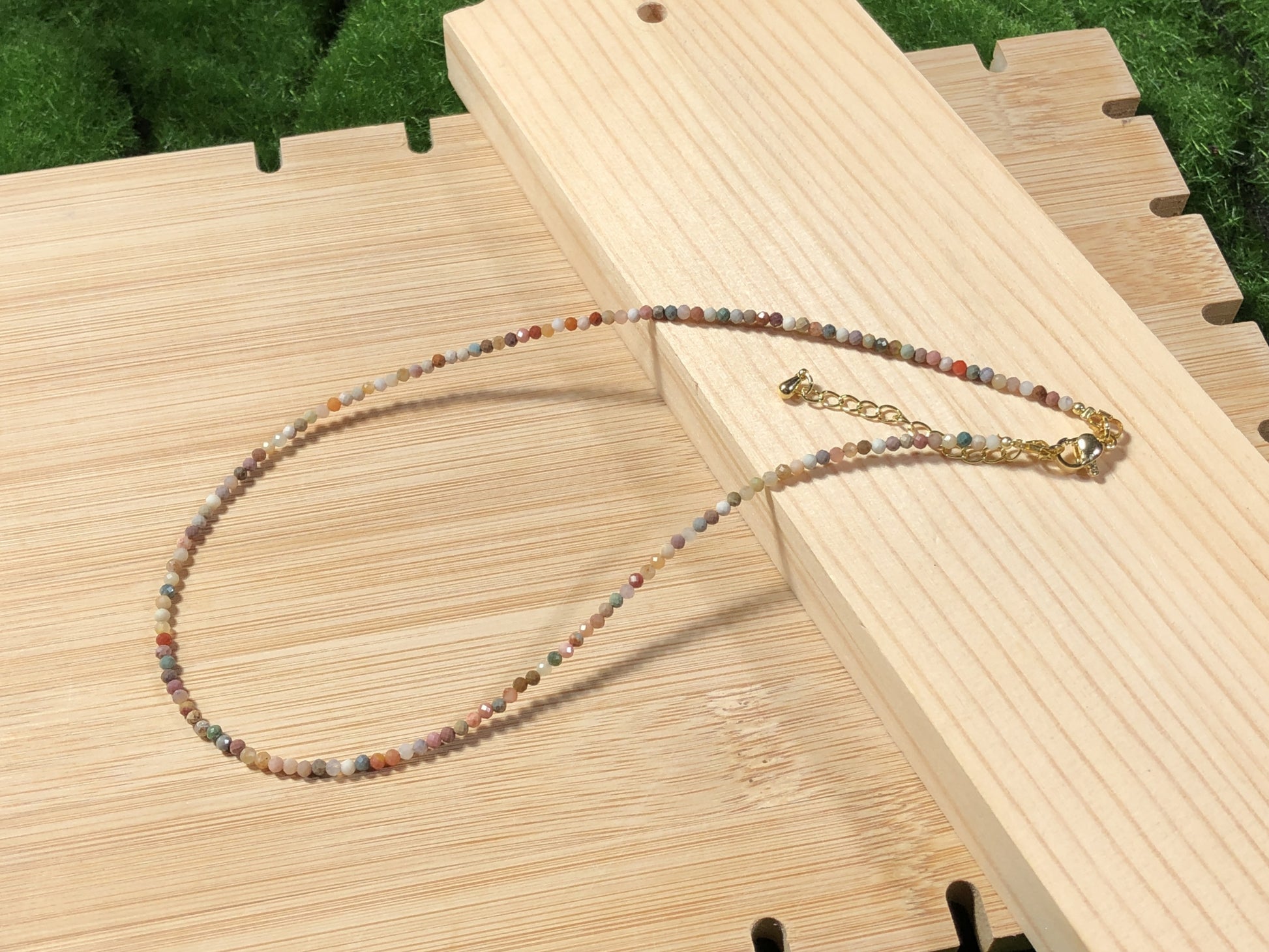 Halskette aus natürlichem Achat, Kette aus 14-karätig vergoldetem Kupfer, handgefertigt.