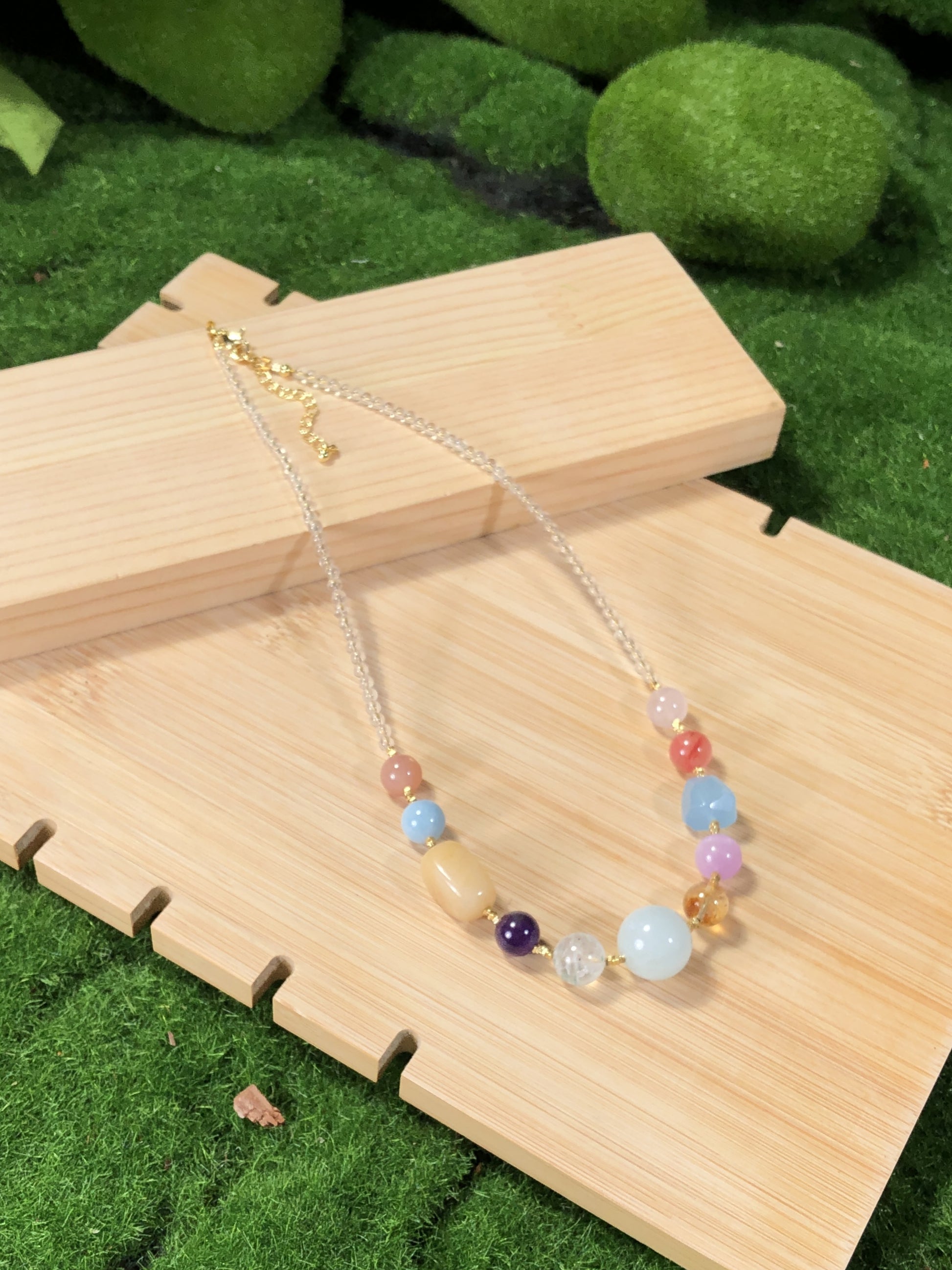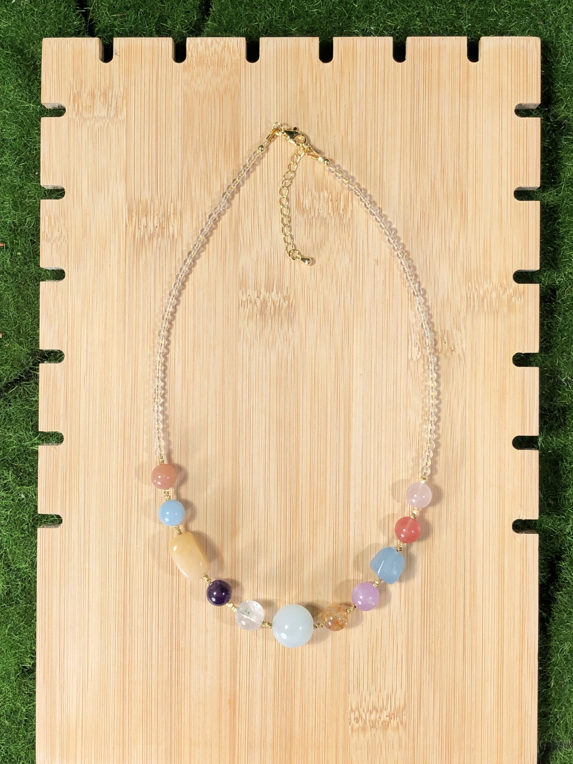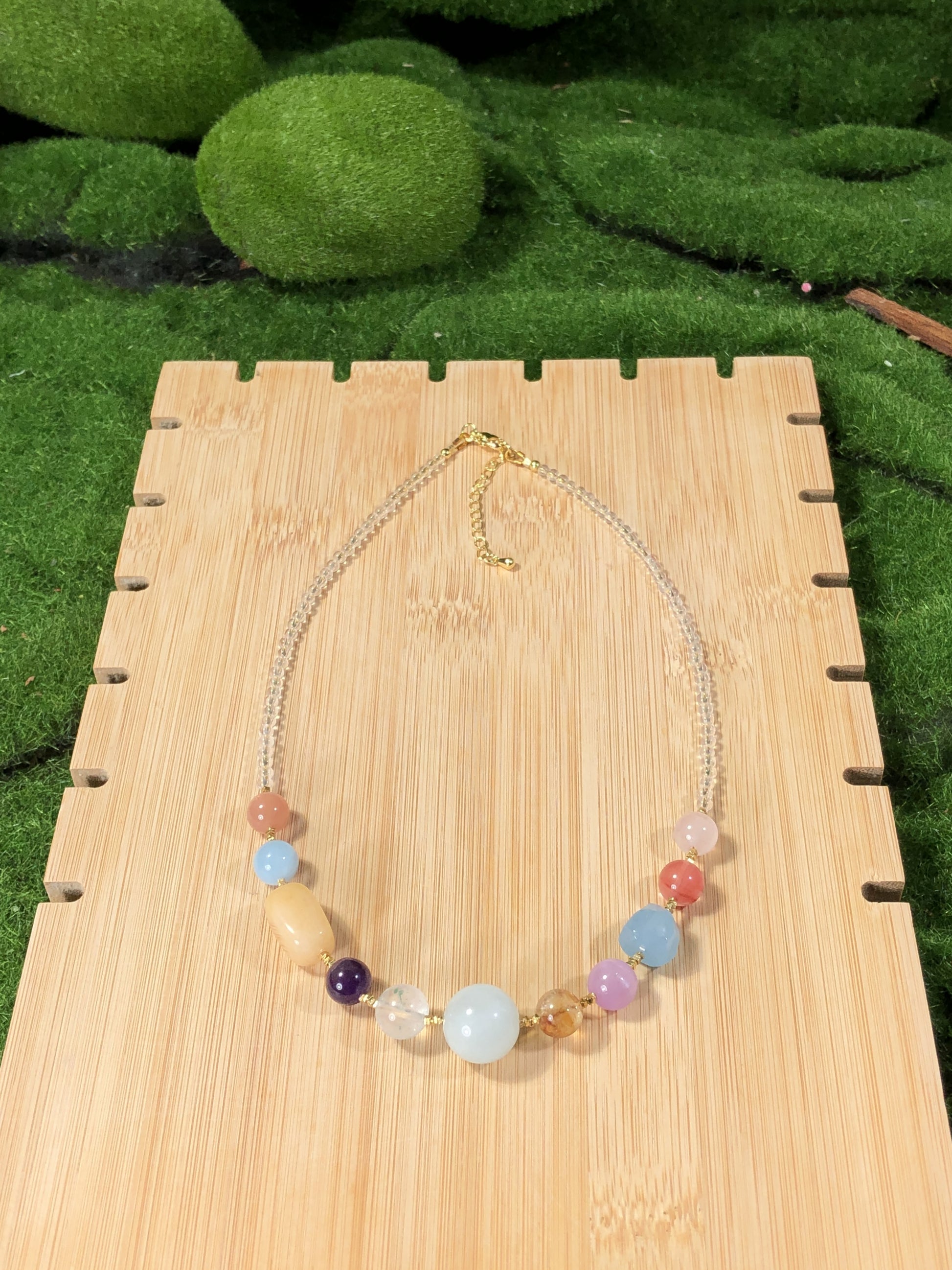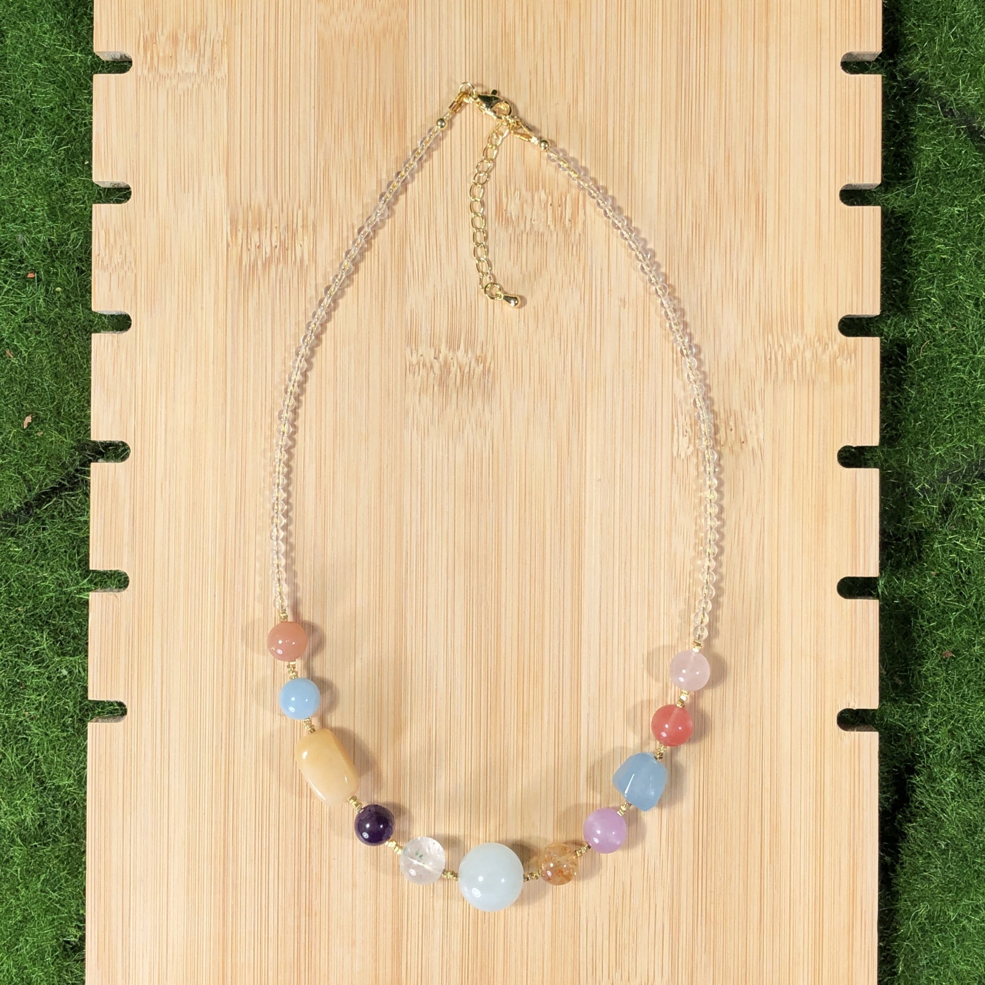 Halskette aus natürlichem Aquamarin und anderen Edelsteinen, 14-karätig vergoldete Messingkette, handgefertigt.