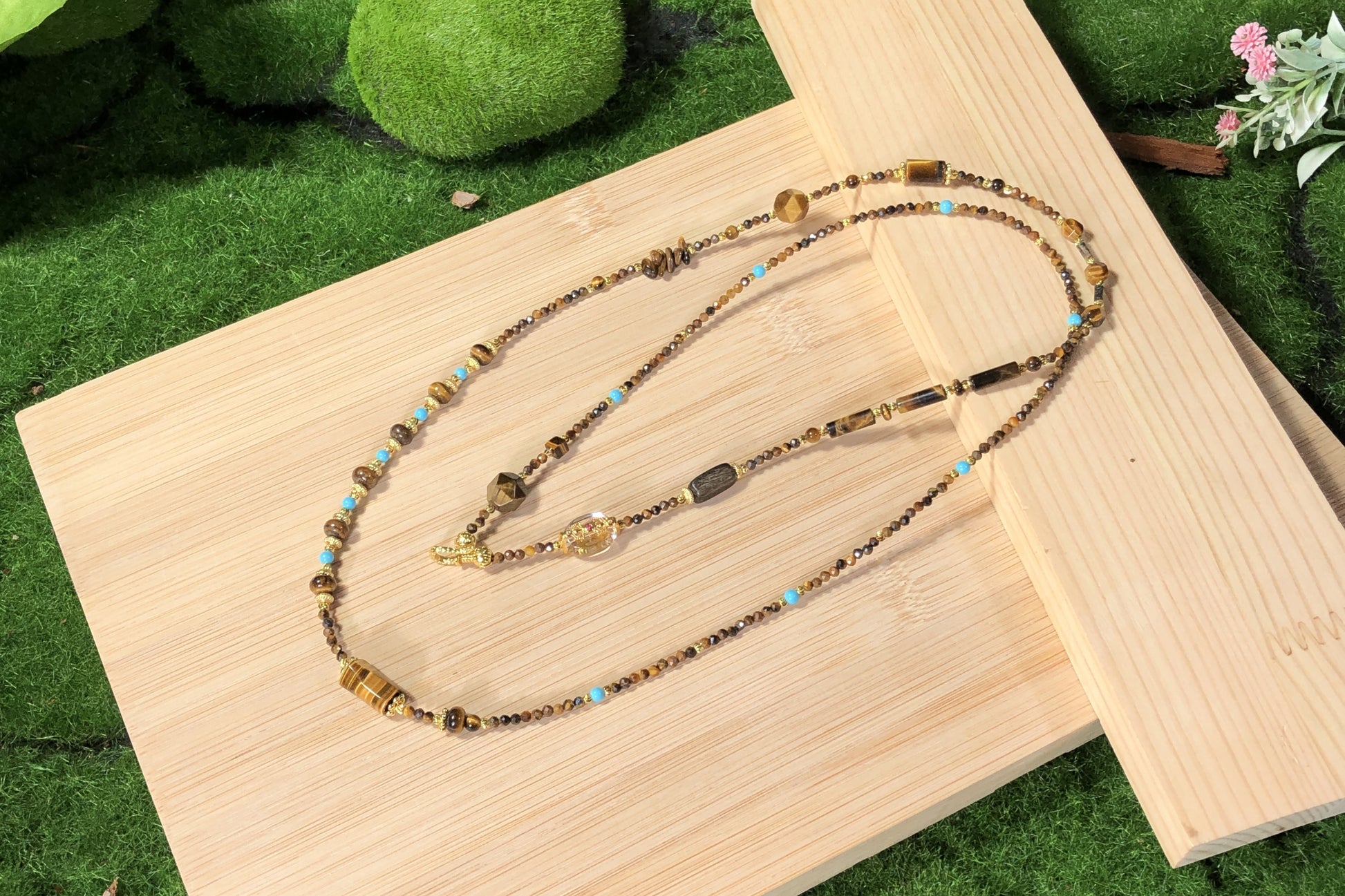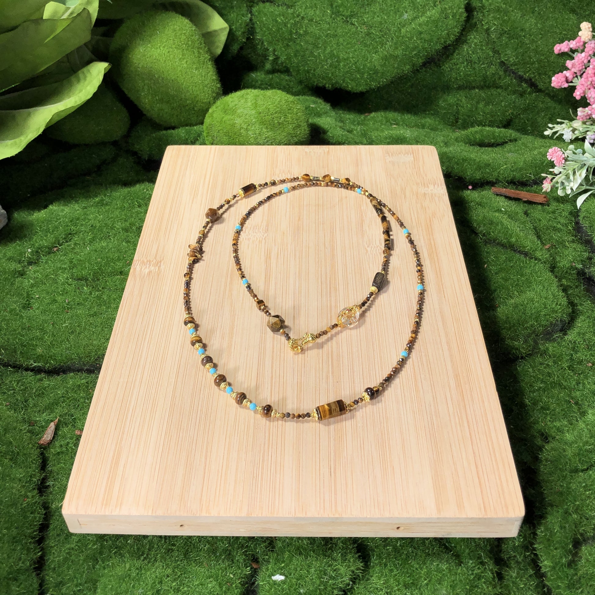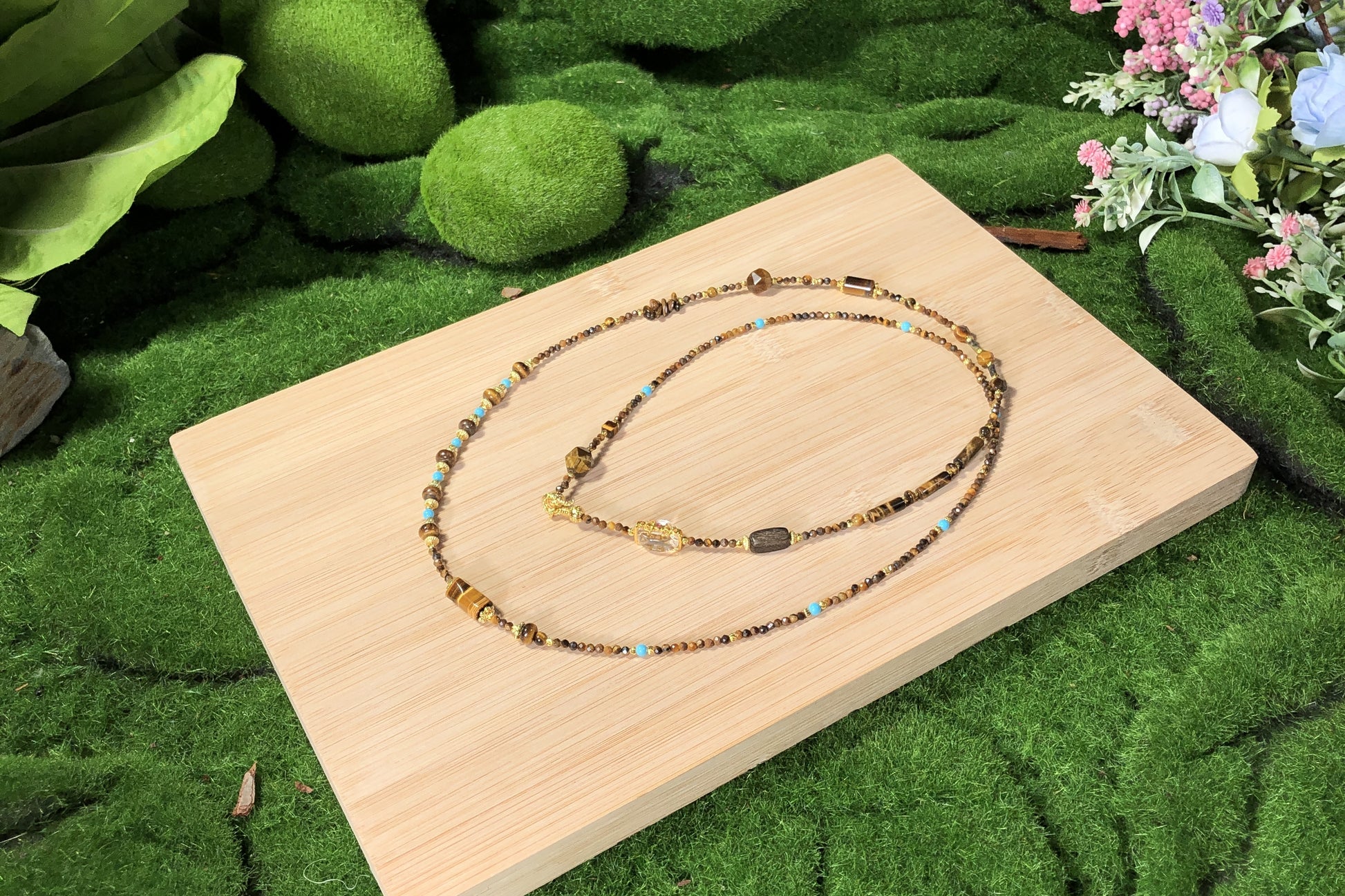 Halskette aus natürlichem Tigerauge, 14-karätig vergoldete Kupferkette, handgefertigt.