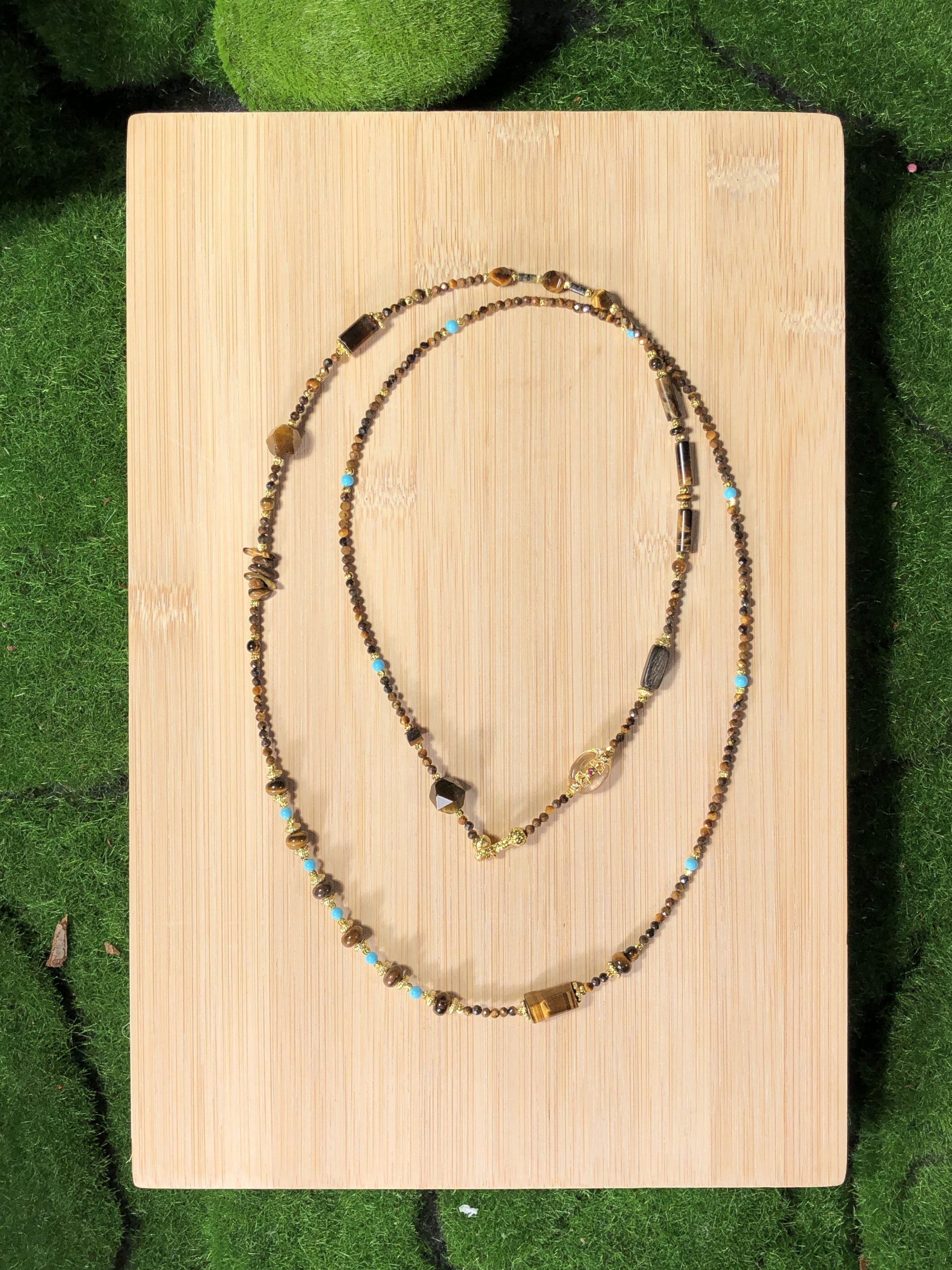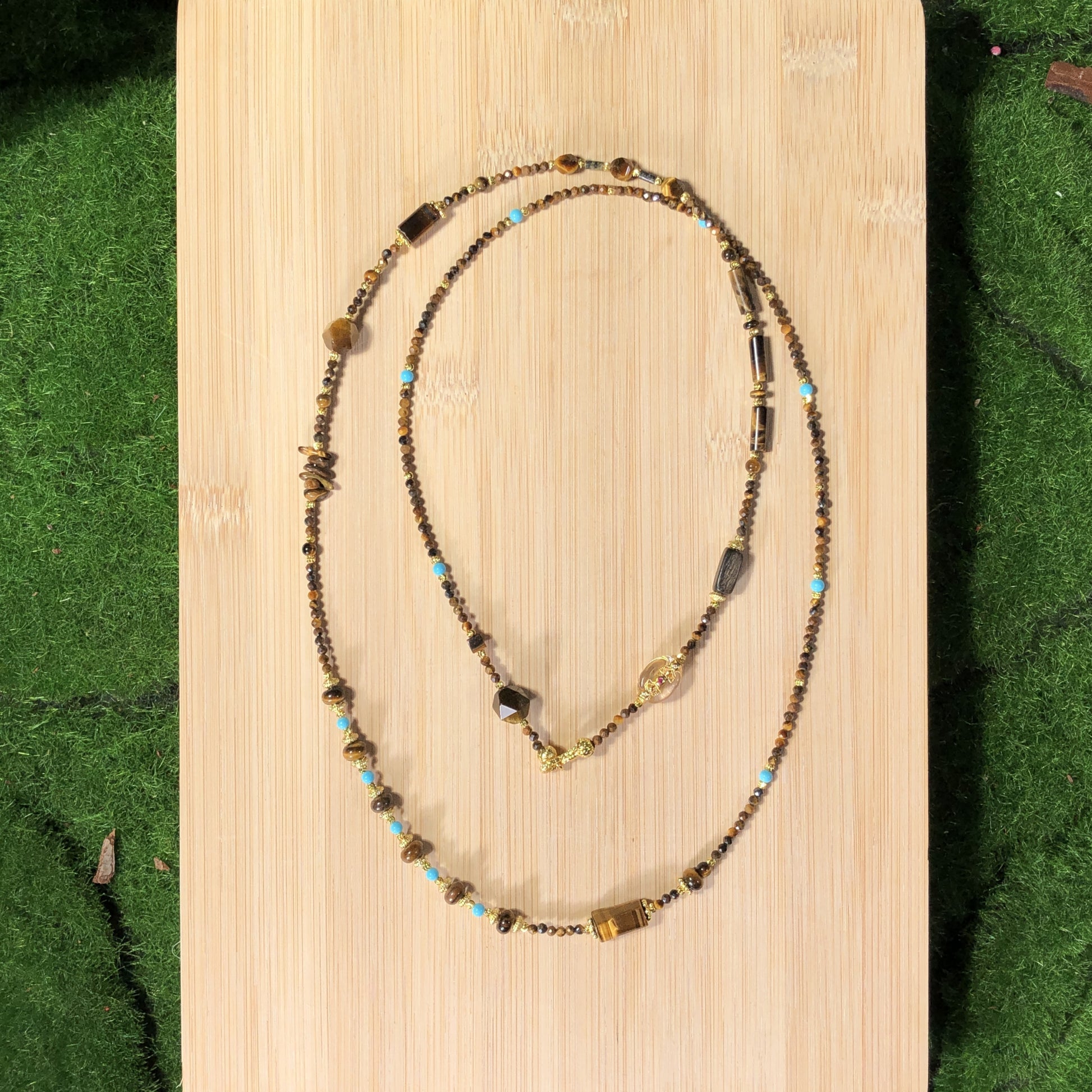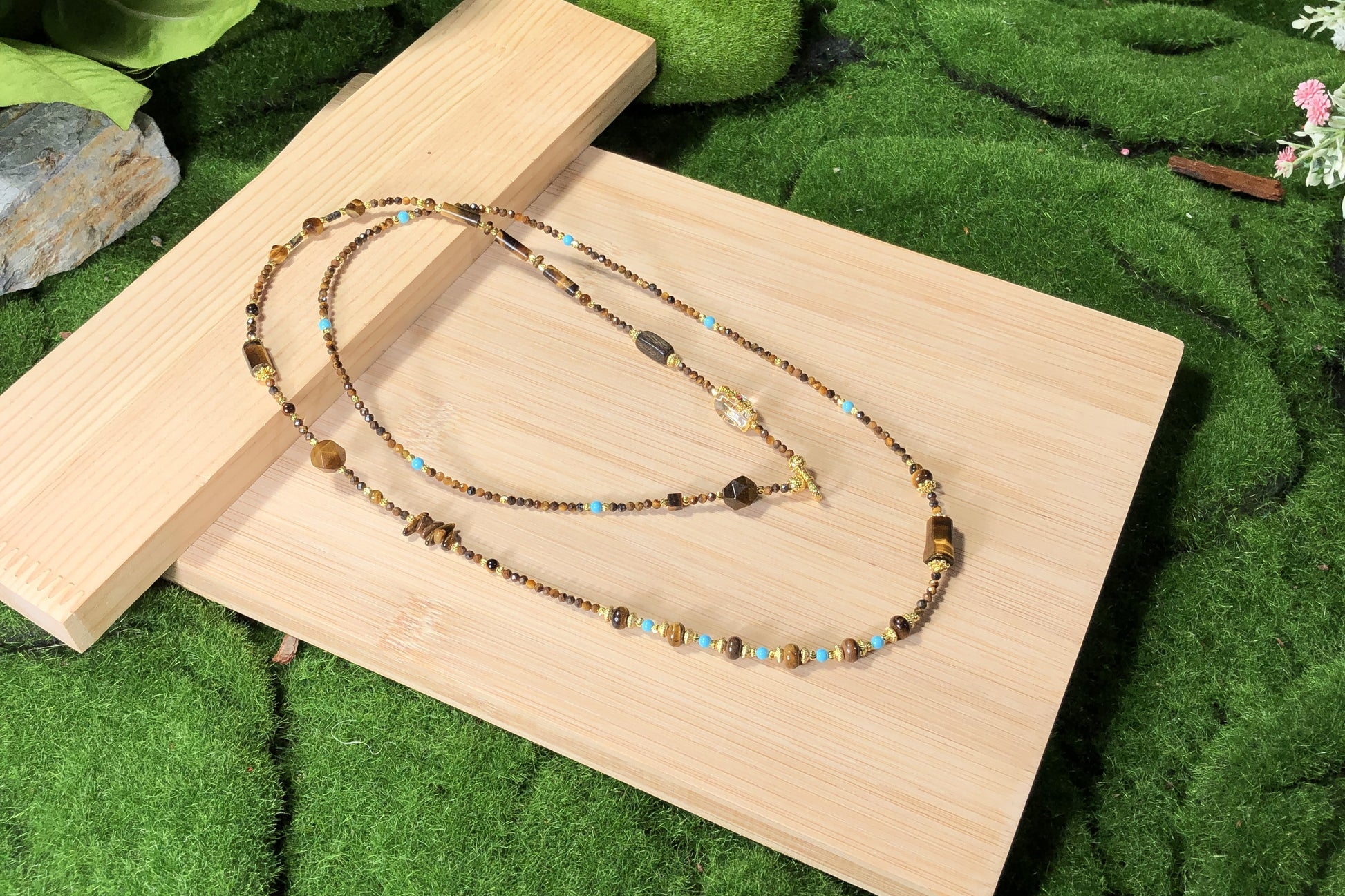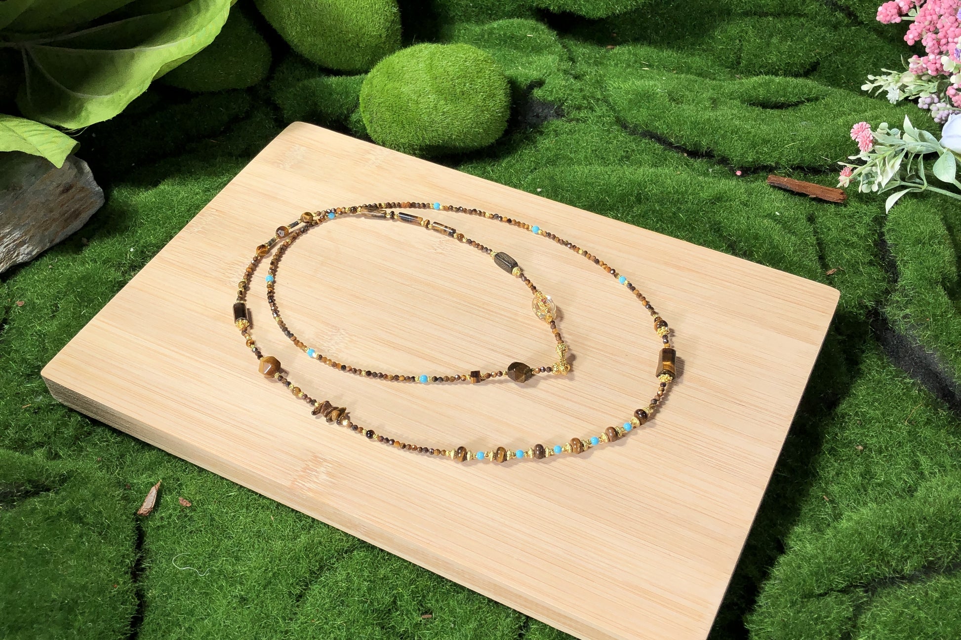 Halskette aus natürlichem Tigerauge, 14-karätig vergoldete Kupferkette, handgefertigt.