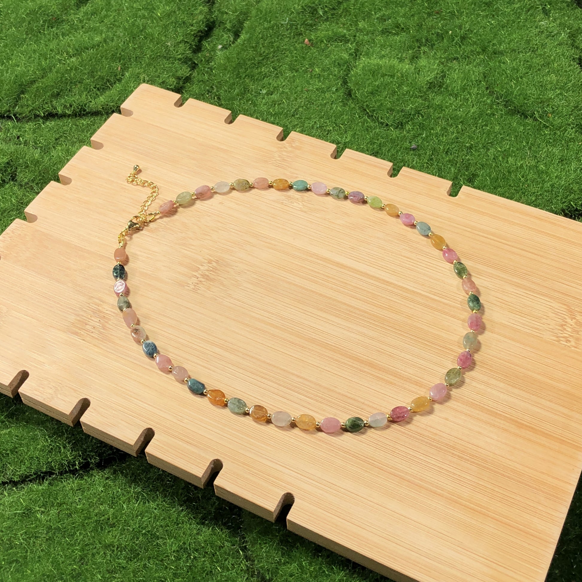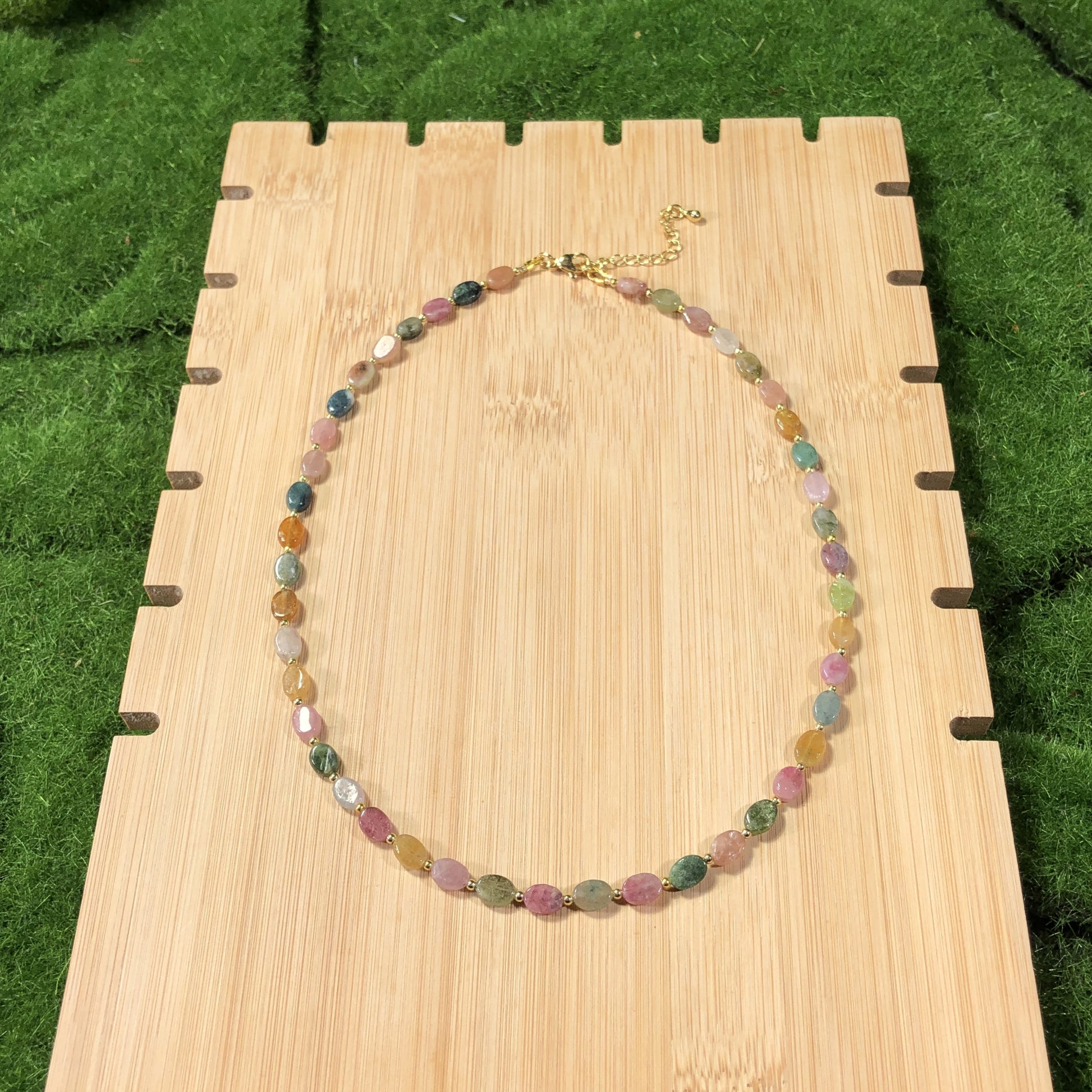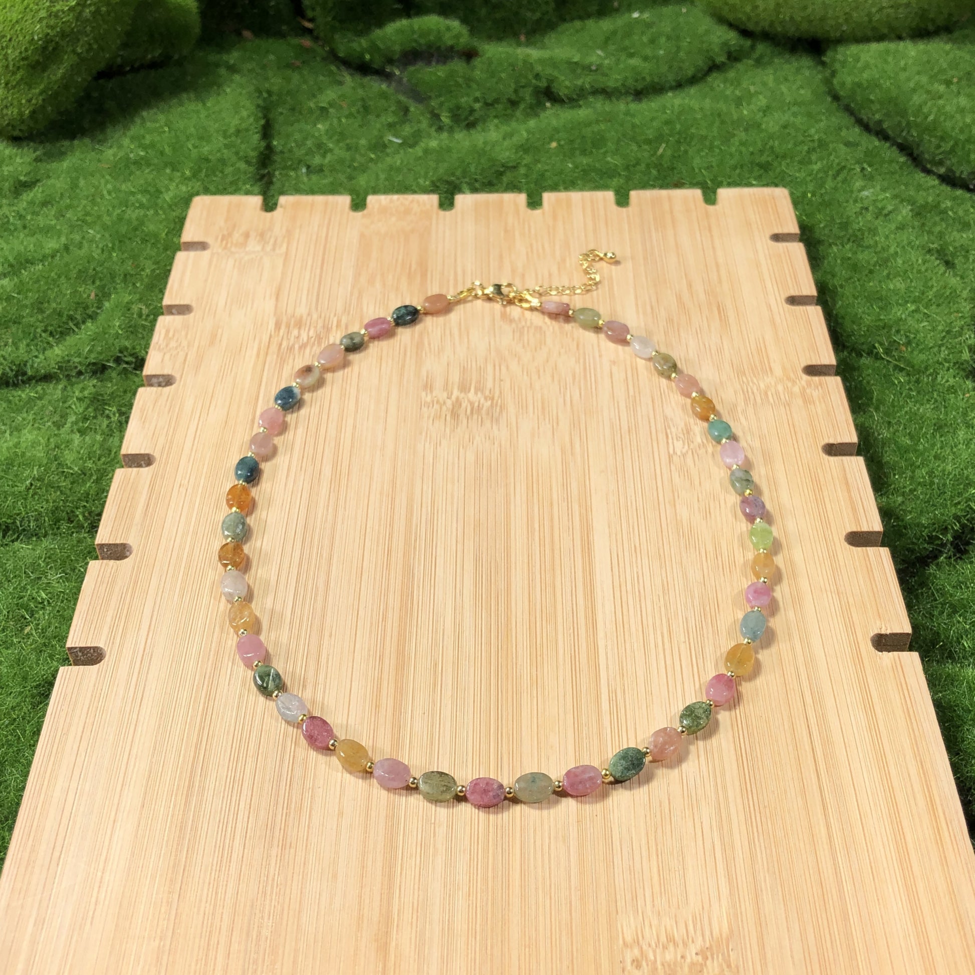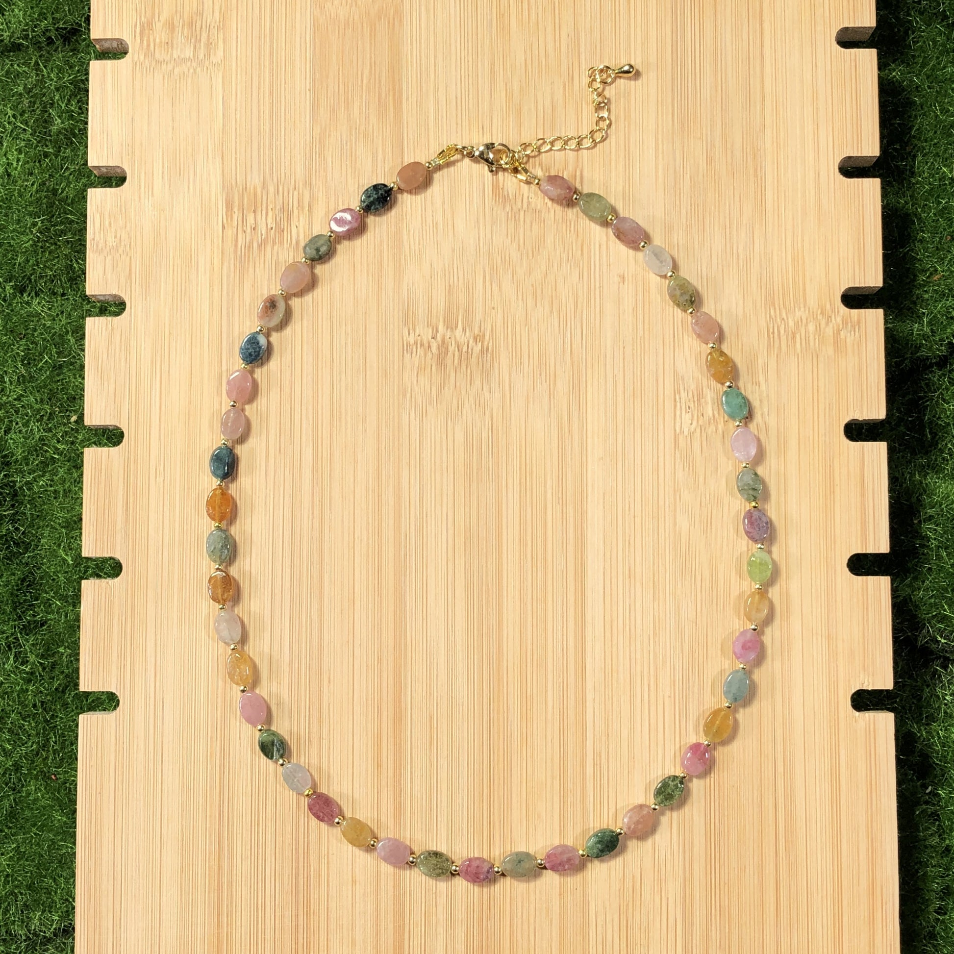 Halskette aus natürlichem Turmalin, kupferplattiert mit 14-karätigem Gold, handgefertigt.