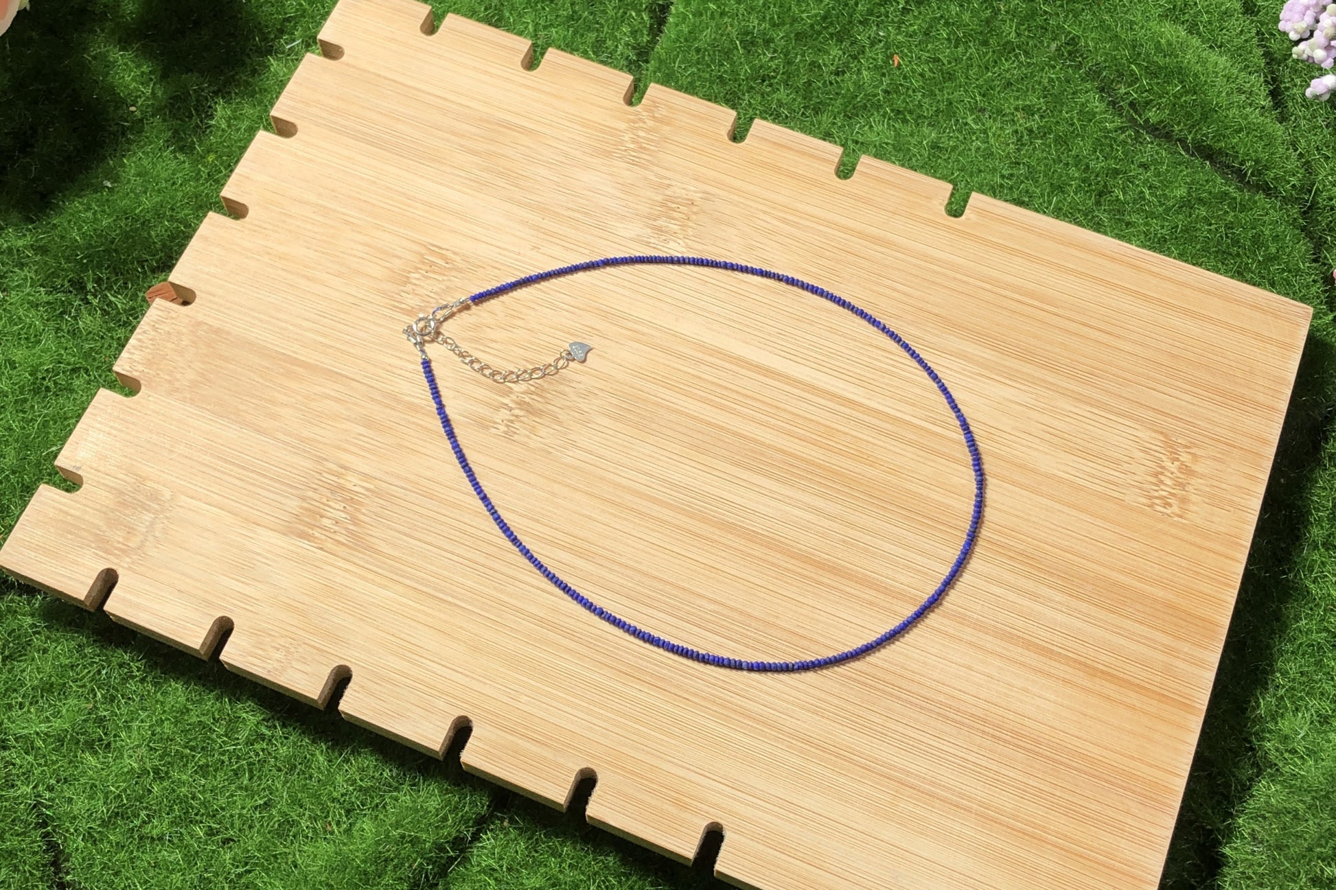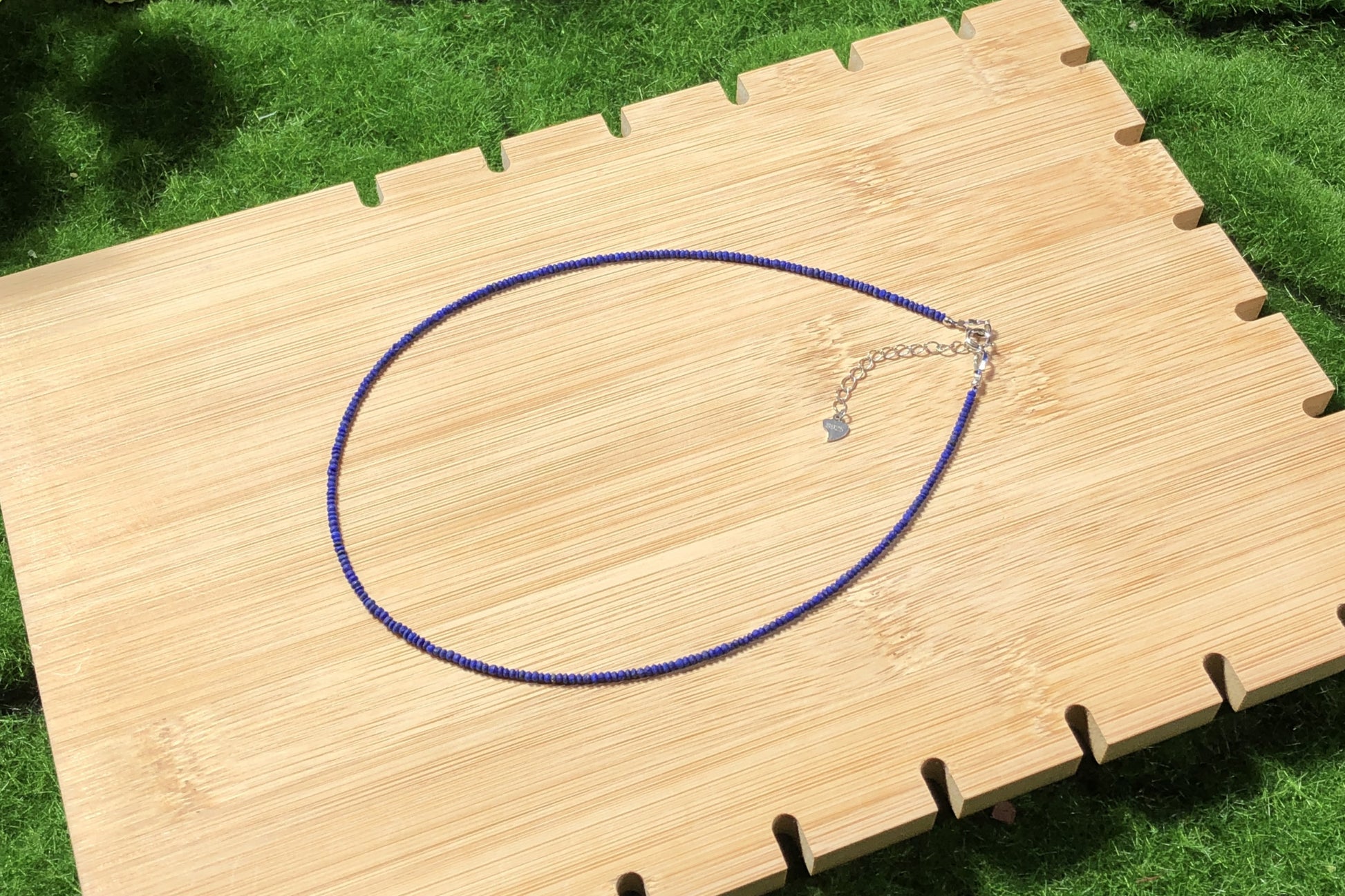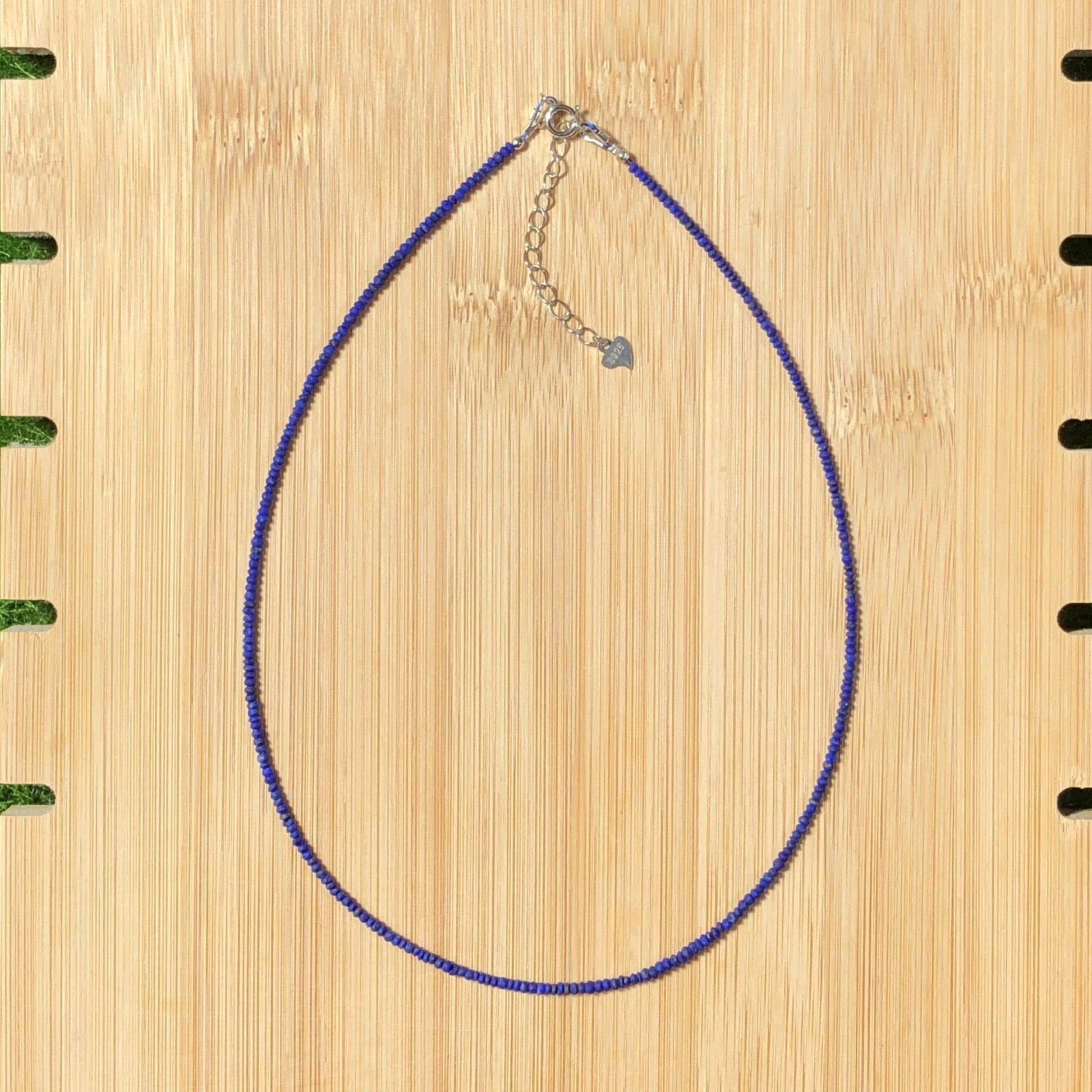 Halskette aus natürlichen Lapislazuli-Perlen mit einer Kette aus 925er Sterlingsilber, handgefertigt.