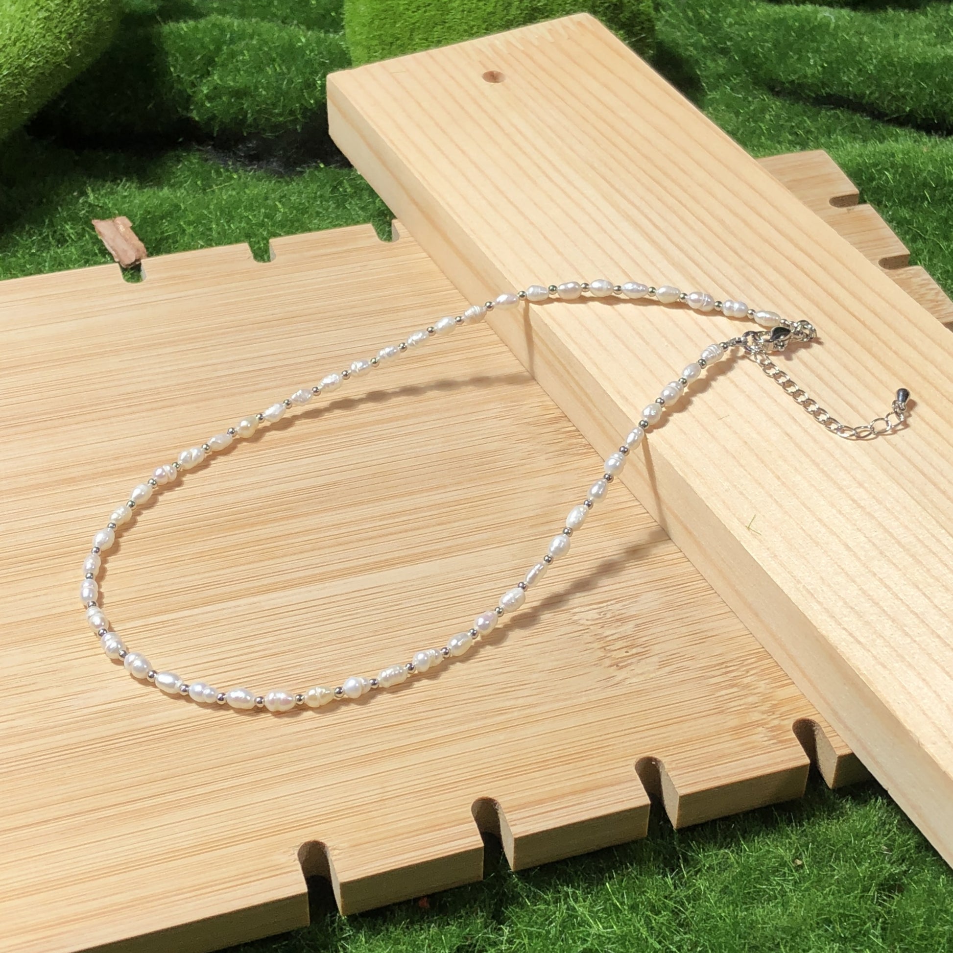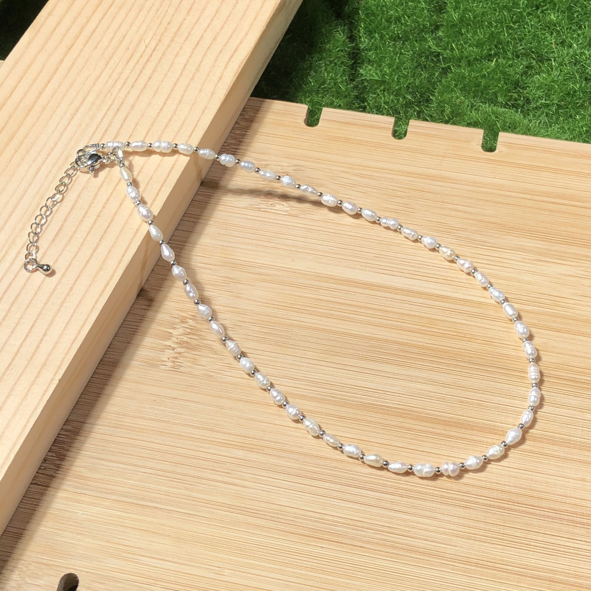 Halskette aus natürlichen Süßwasserperlen, handgefertigt