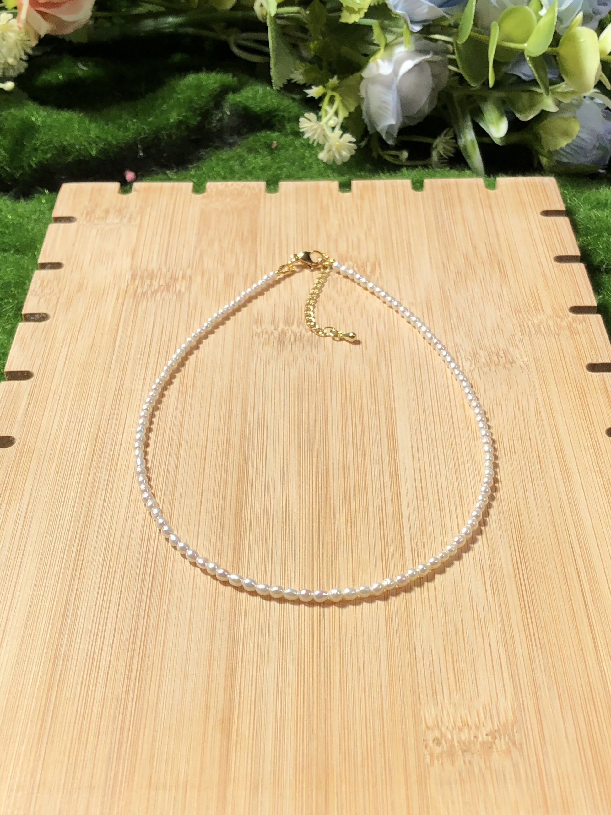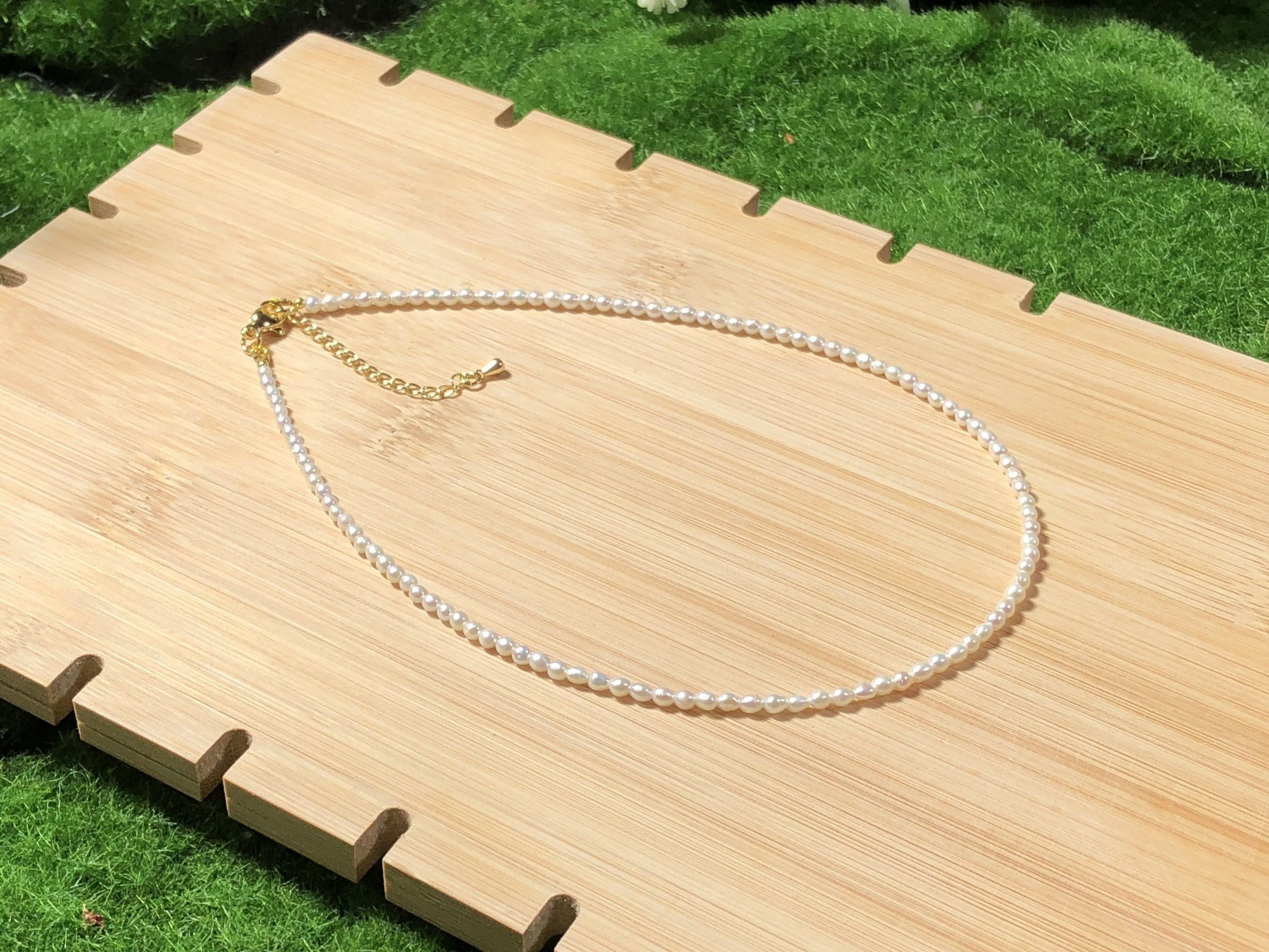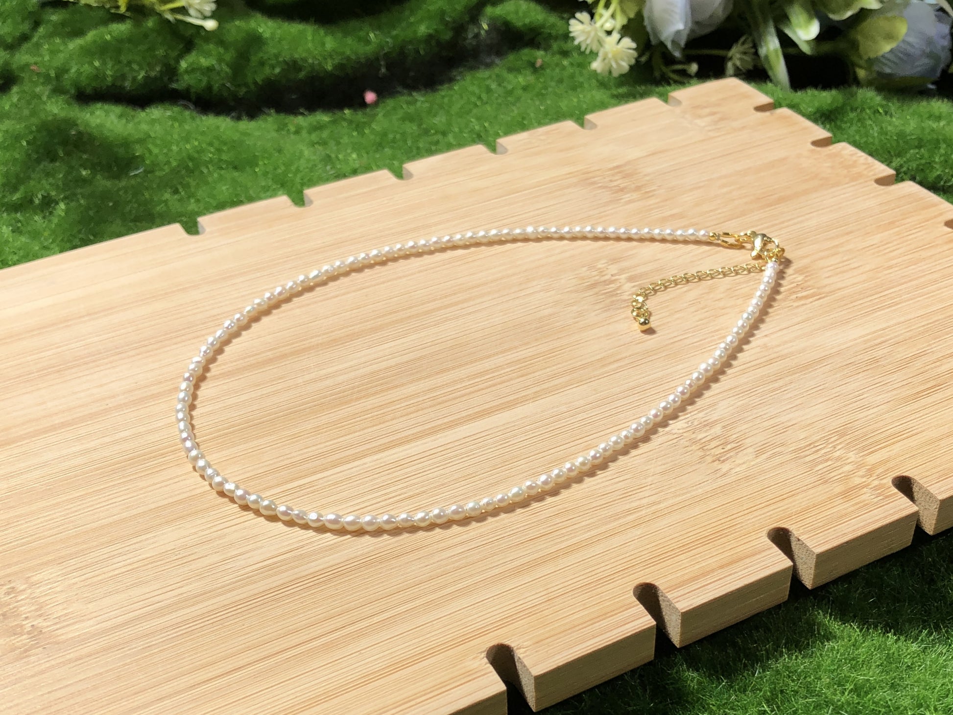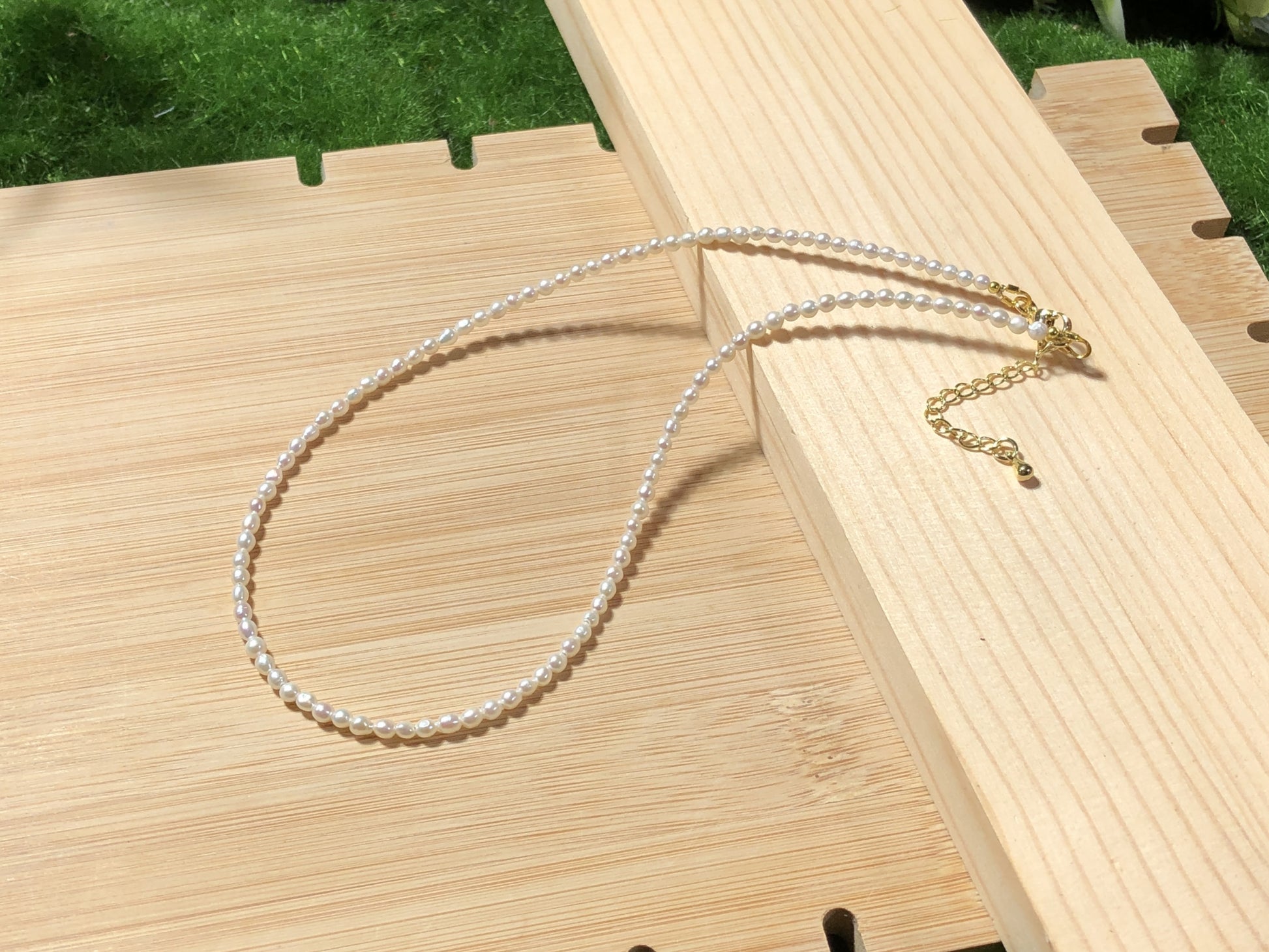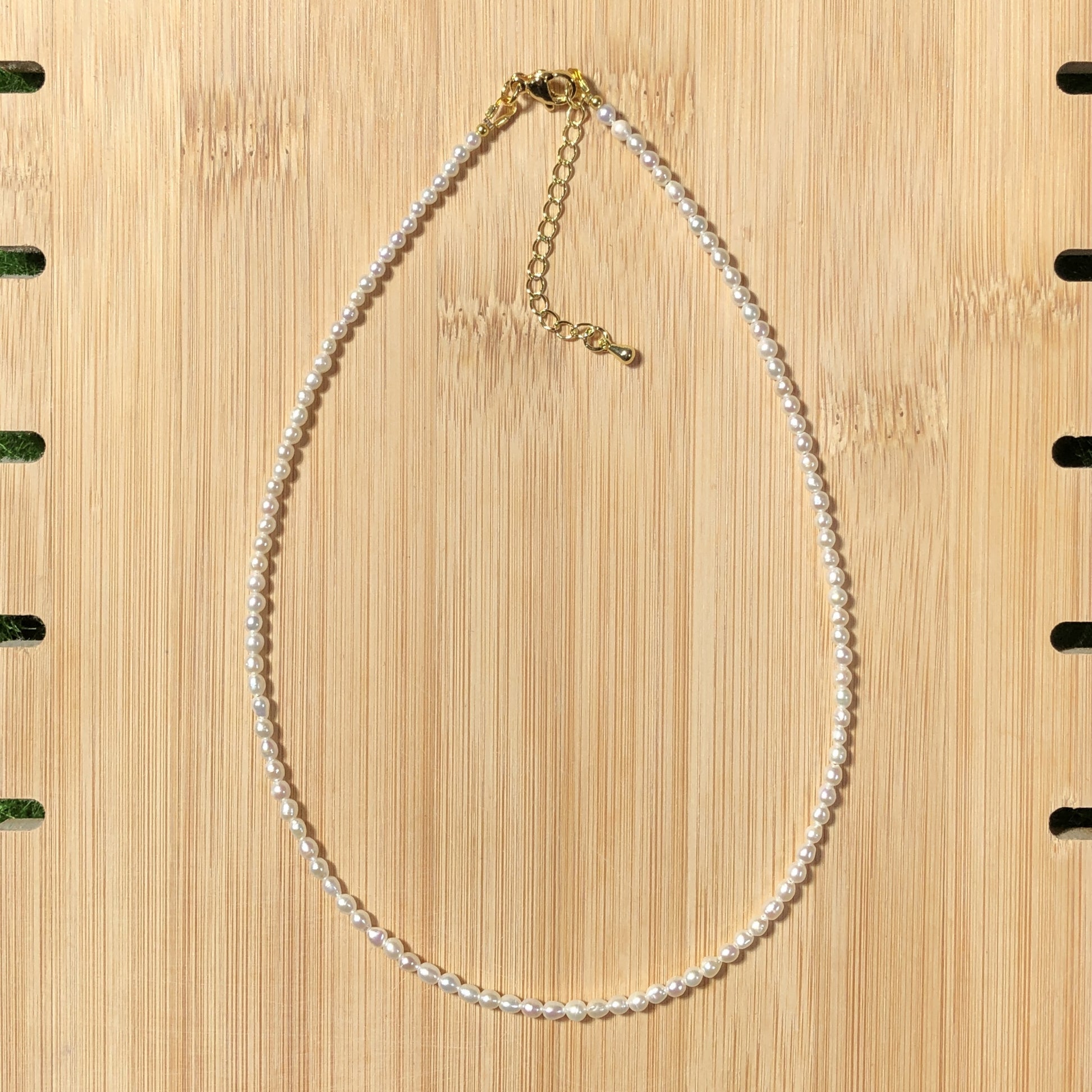 Halskette aus natürlichen Süßwasserperlen, kupferplattiert mit 14-karätigem Gold, handgefertigt.