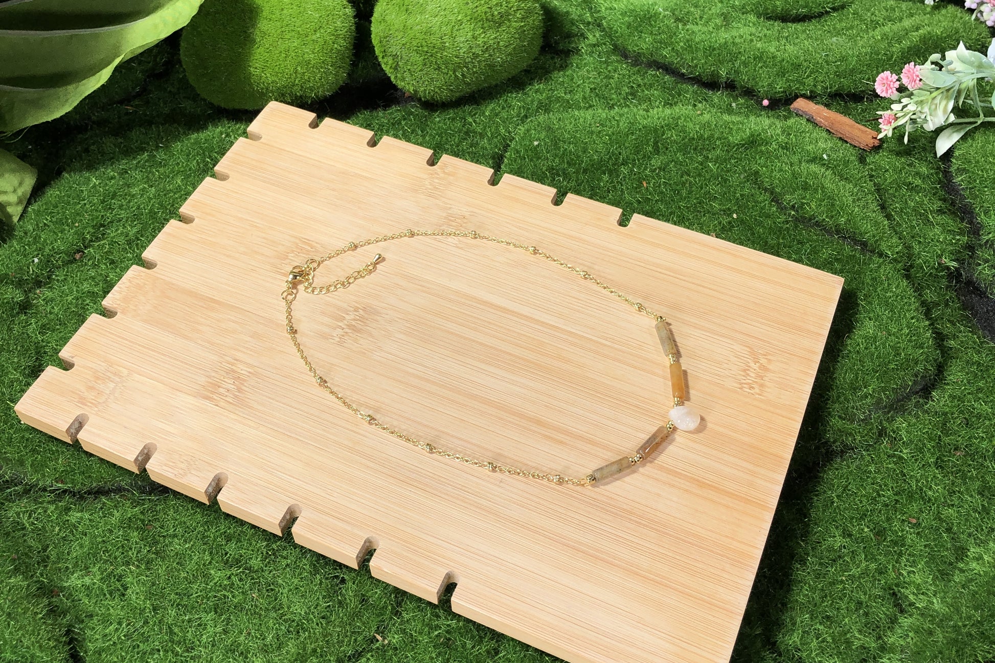Die Natursteine verleihen jedem Artikel einen einzigartigen Charakter. Obwohl ich nur die qualitativ besten Steine auswähle, bringen ihre natürlichen Texturen und Formen ihre Eigenheiten mit sich. Es ist wichtig zu wissen, dass die Natursteine keine 100% perfekte Form und Klarheit haben werden.