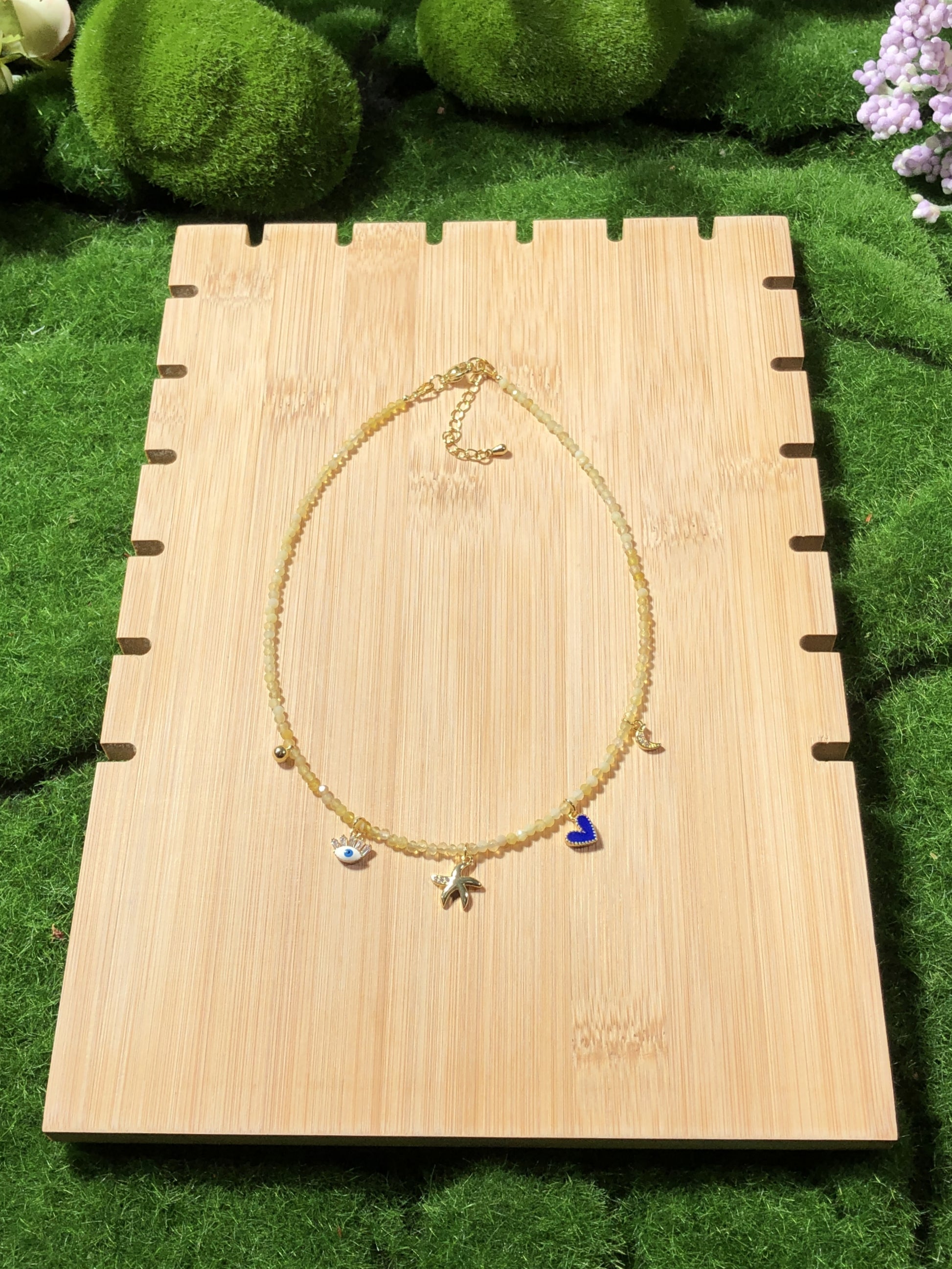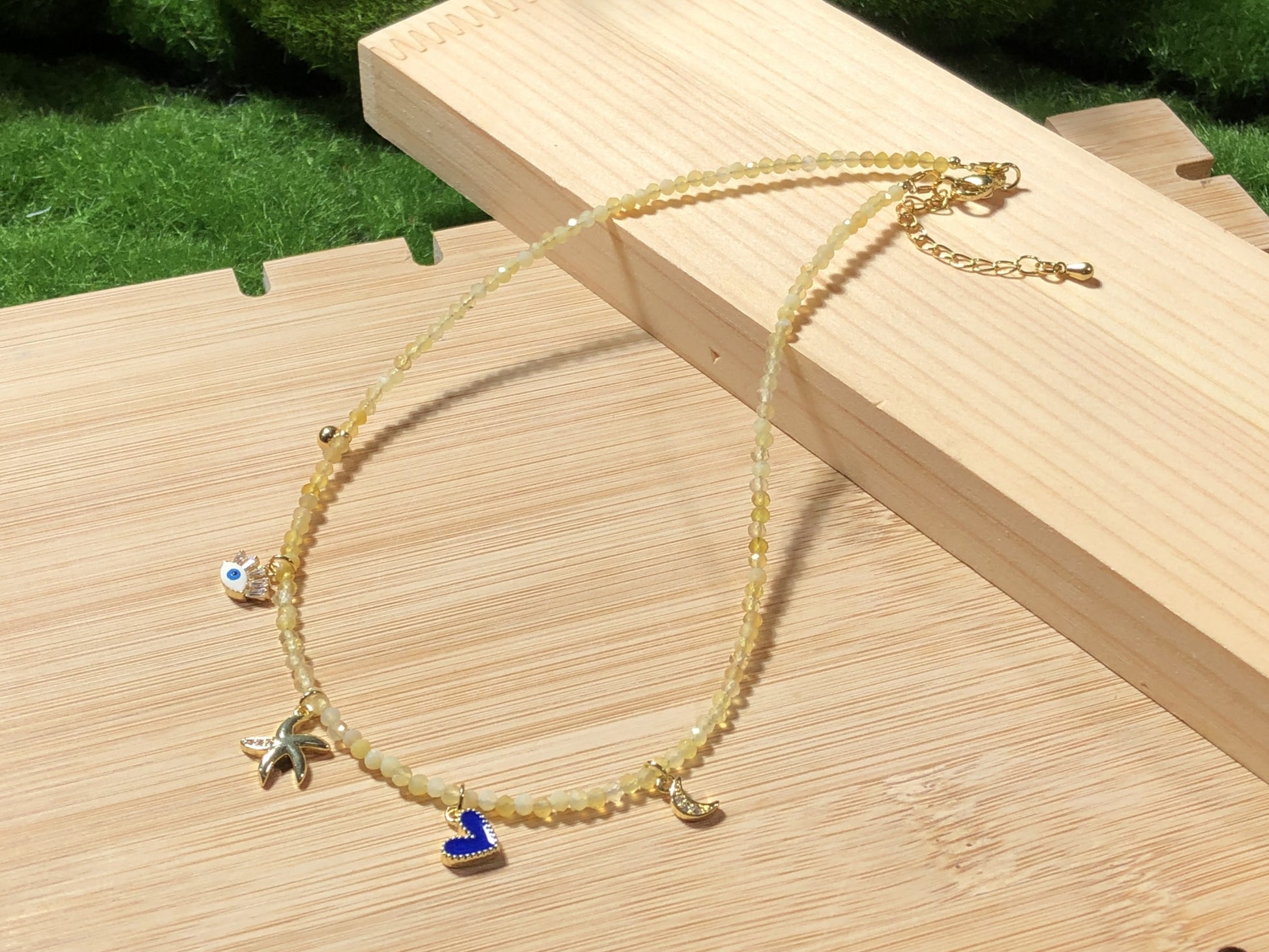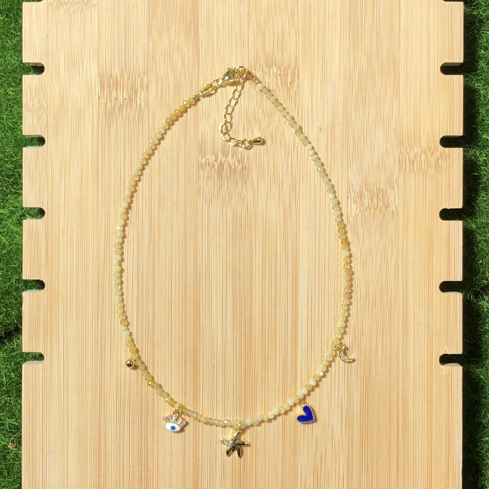 Die Natursteine verleihen jedem Artikel einen einzigartigen Charakter. Obwohl ich nur die qualitativ besten Steine auswähle, bringen ihre natürlichen Texturen und Formen ihre Eigenheiten mit sich. Es ist wichtig zu wissen, dass die Natursteine keine 100% perfekte Form und Klarheit haben werden.