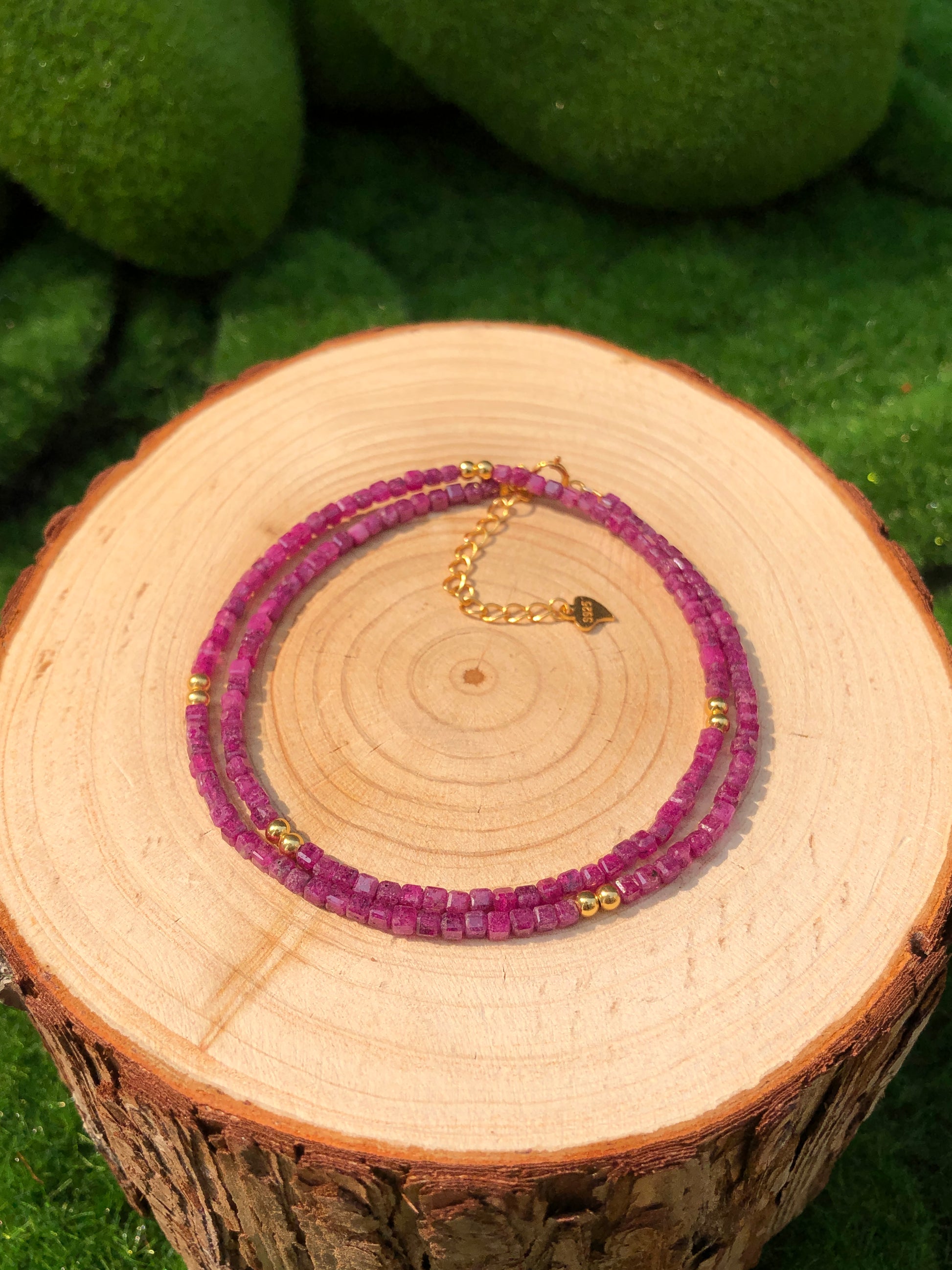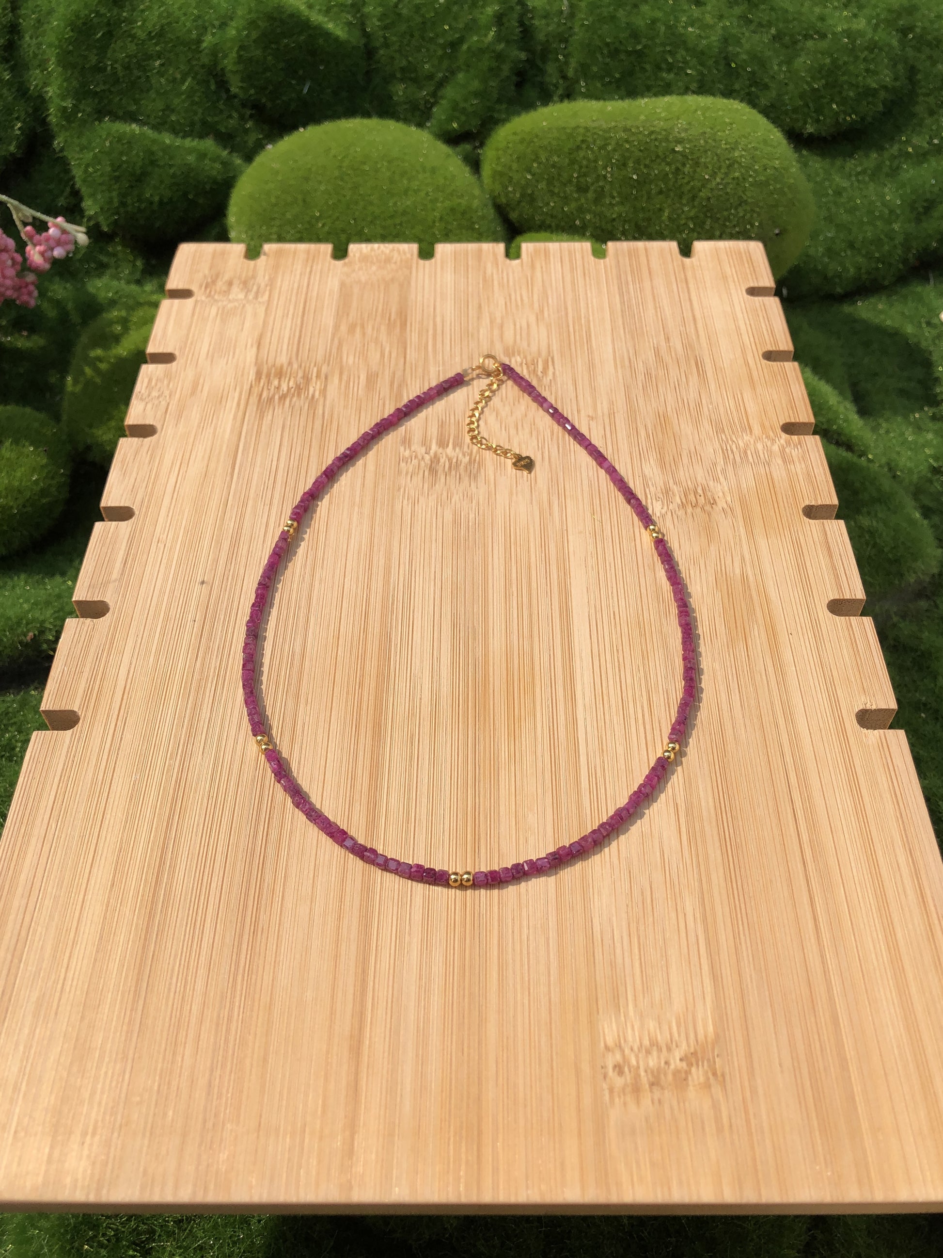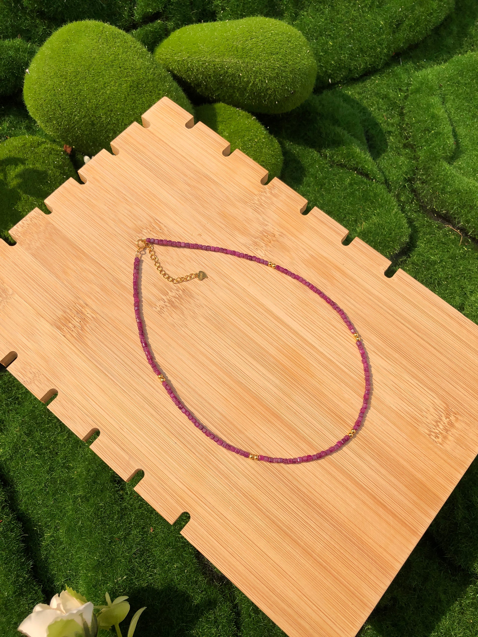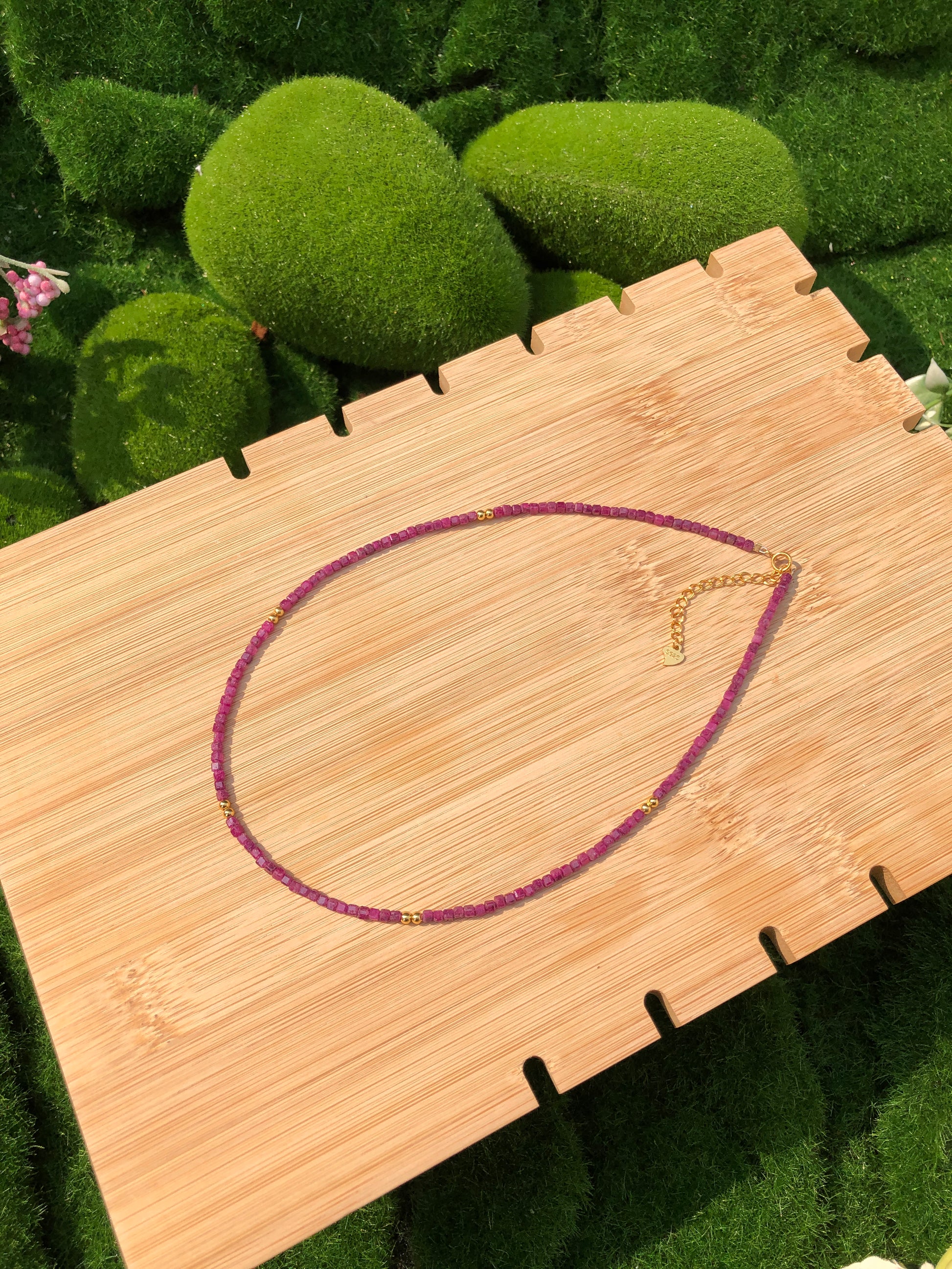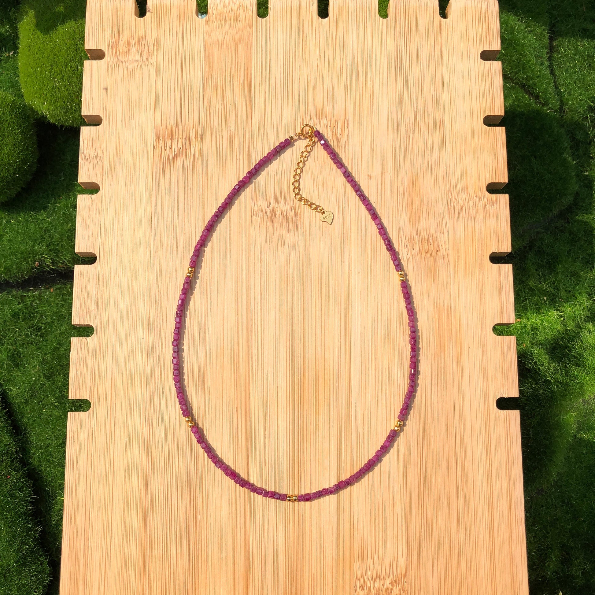 Sythethische Rubin Halskette versilbert 14K handgefertigt