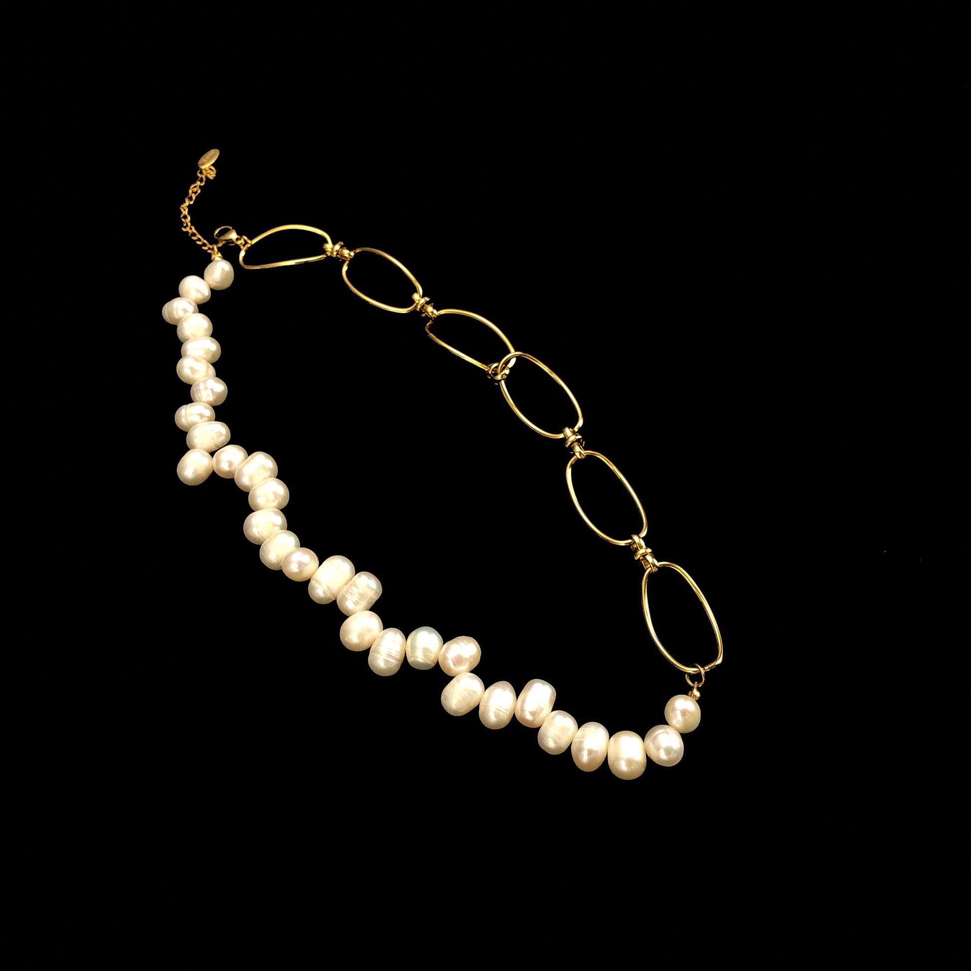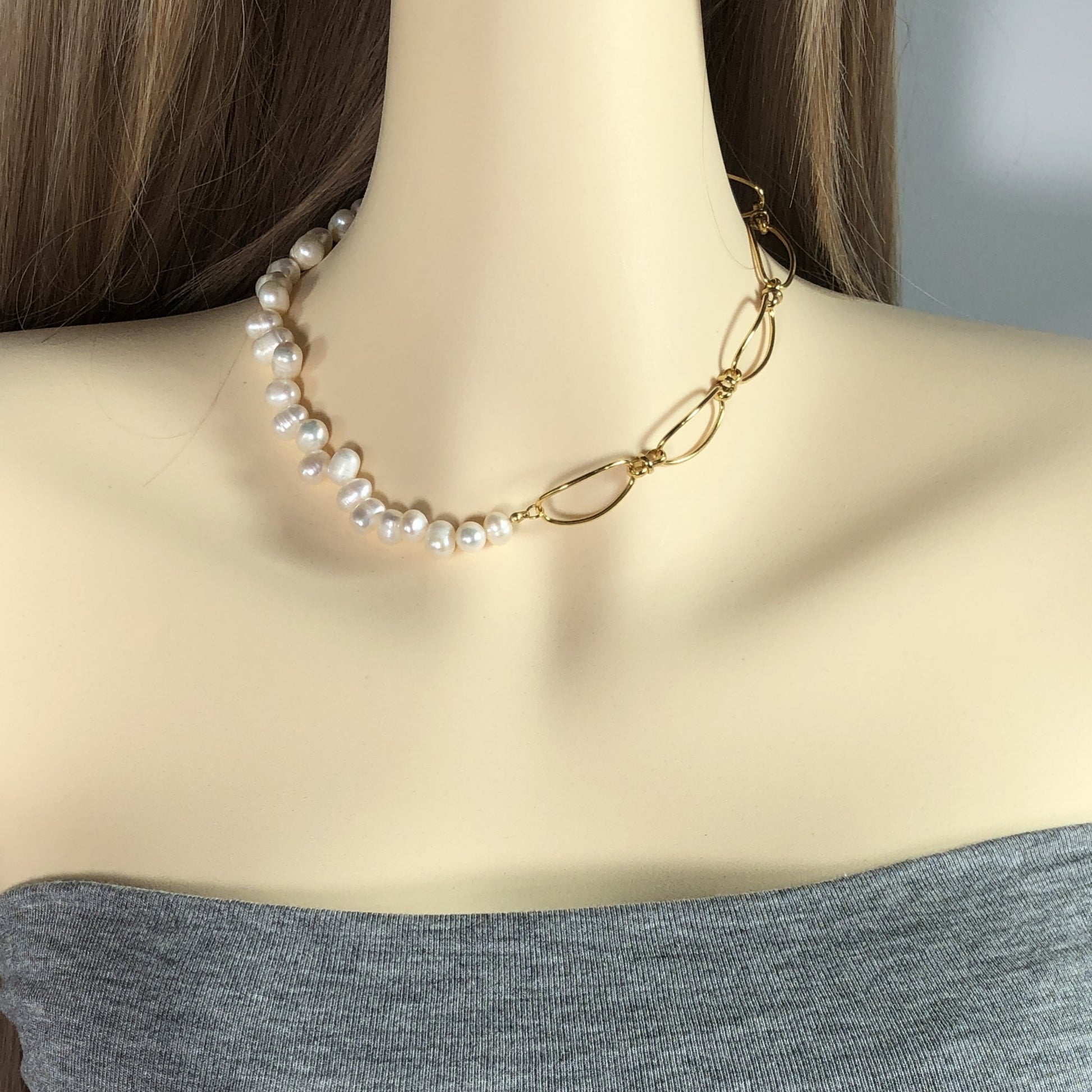 Natürliche Süßwasserperlen, Halskette aus 14-karätig vergoldetem Kupfer, handgefertigt.