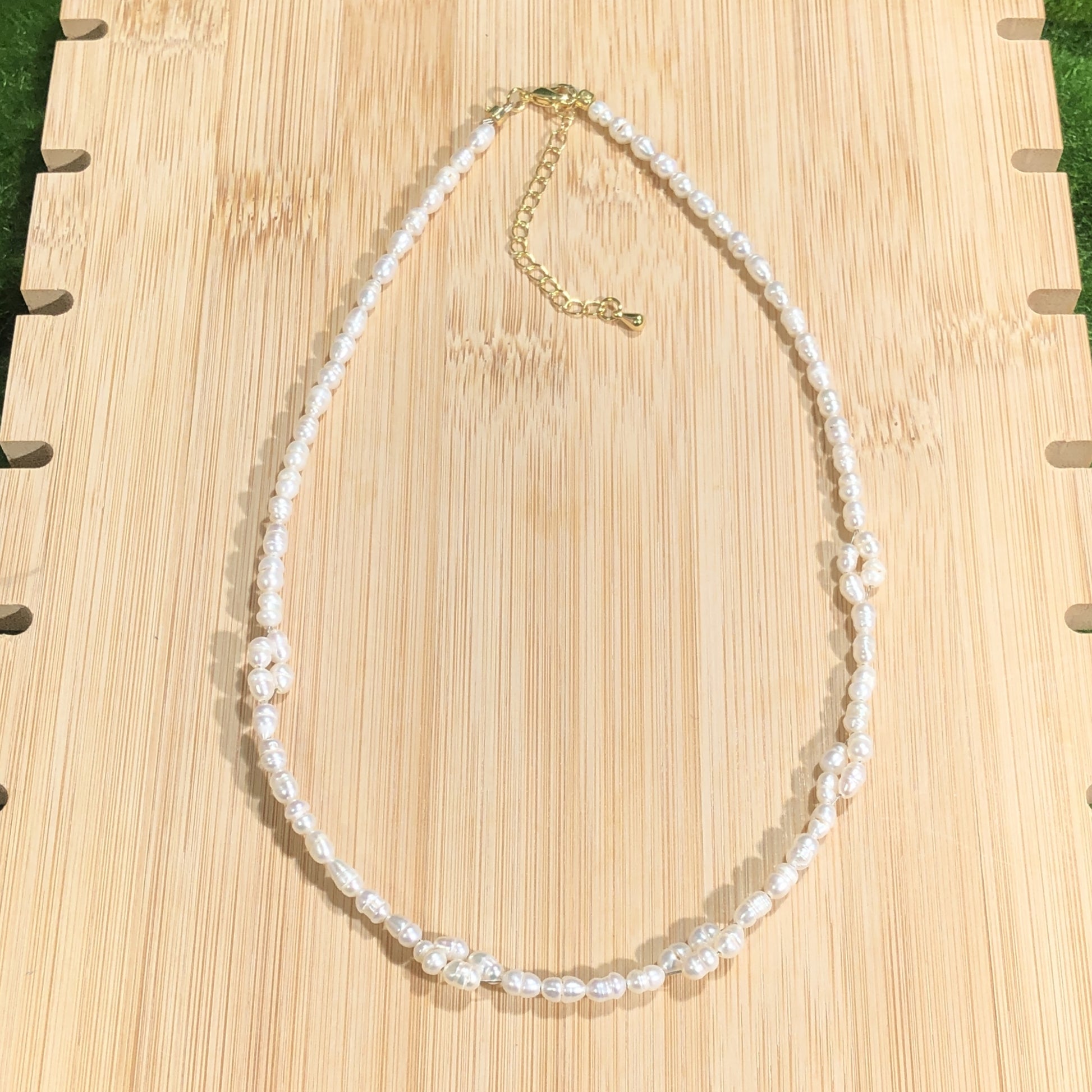 Natürliche Süßwasserperlenkette, Kupfer vergoldet mit 14K, handgefertigte Perlenkette