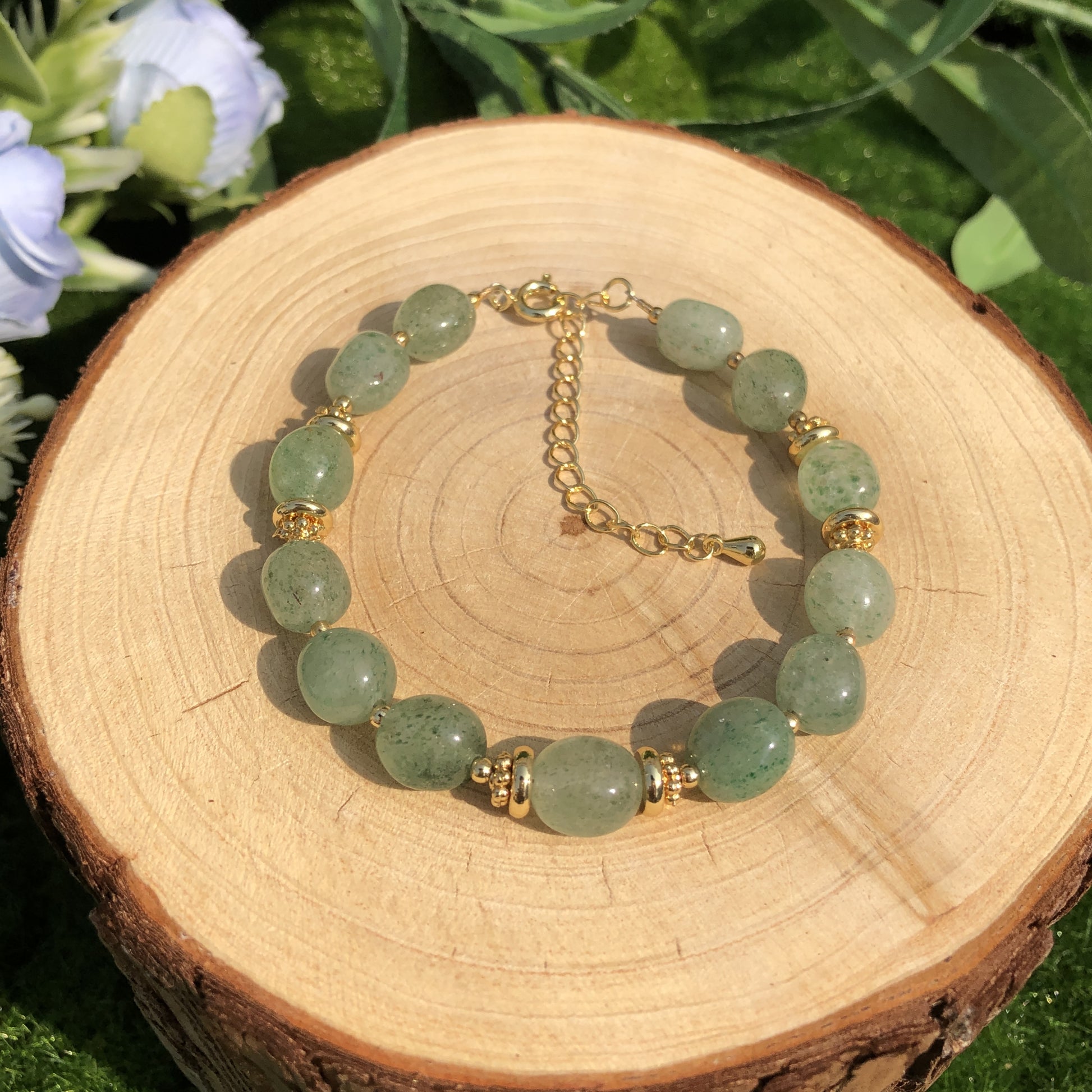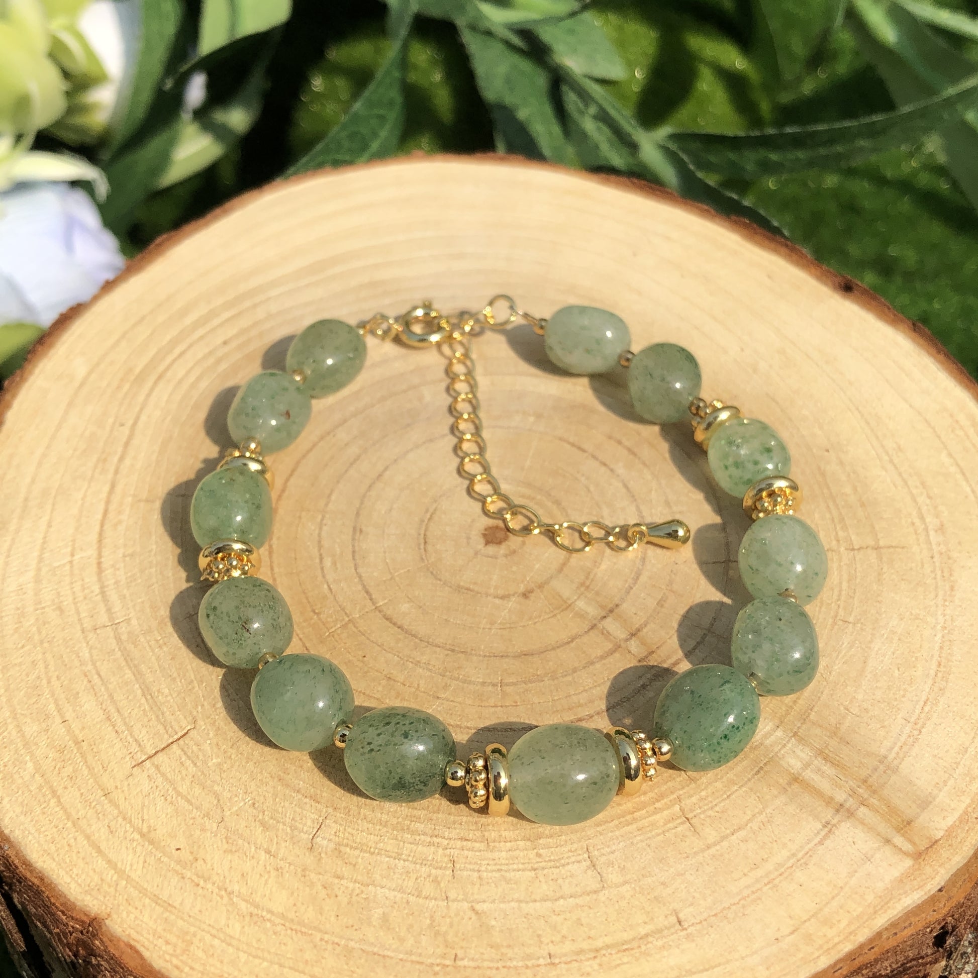 Natürliches grünes Erdbeerkristallarmband, handgefertigt.