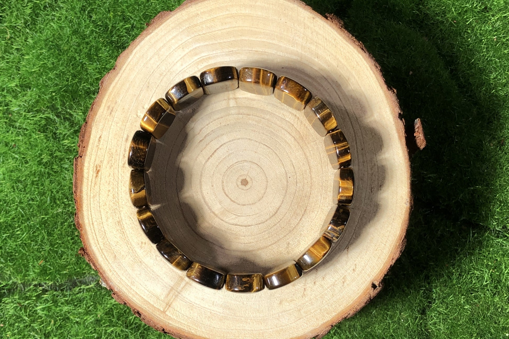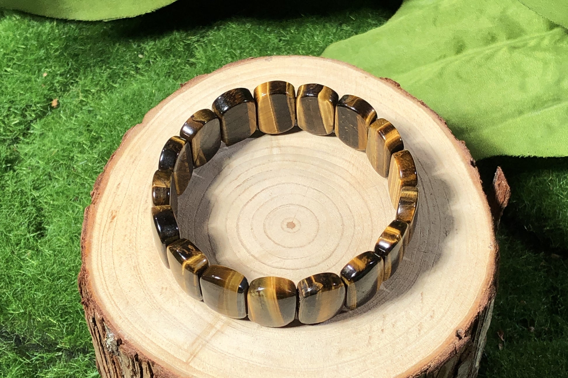 Ovales Armband aus natürlichem gelbem Tigerauge, handgefertigt.