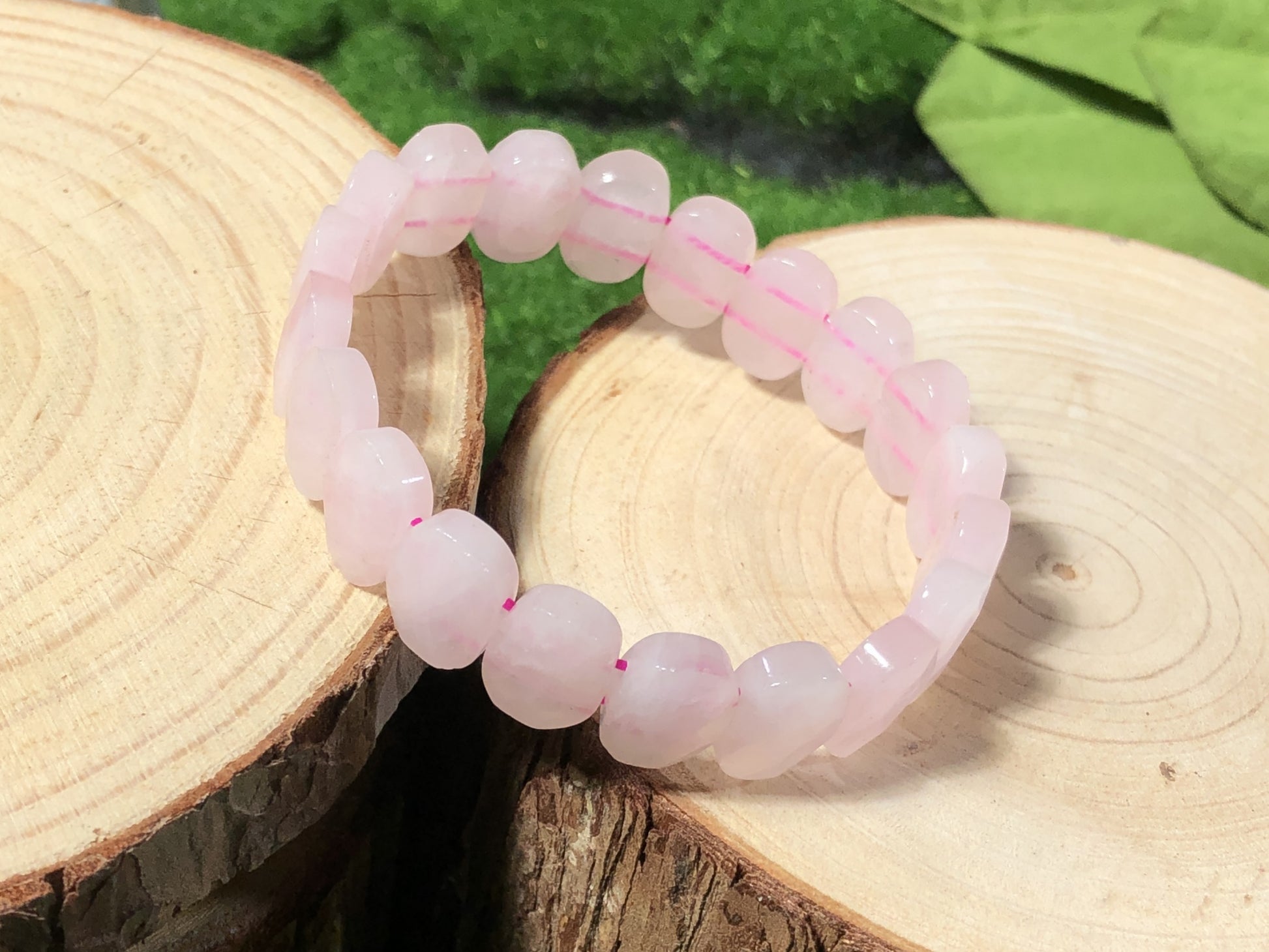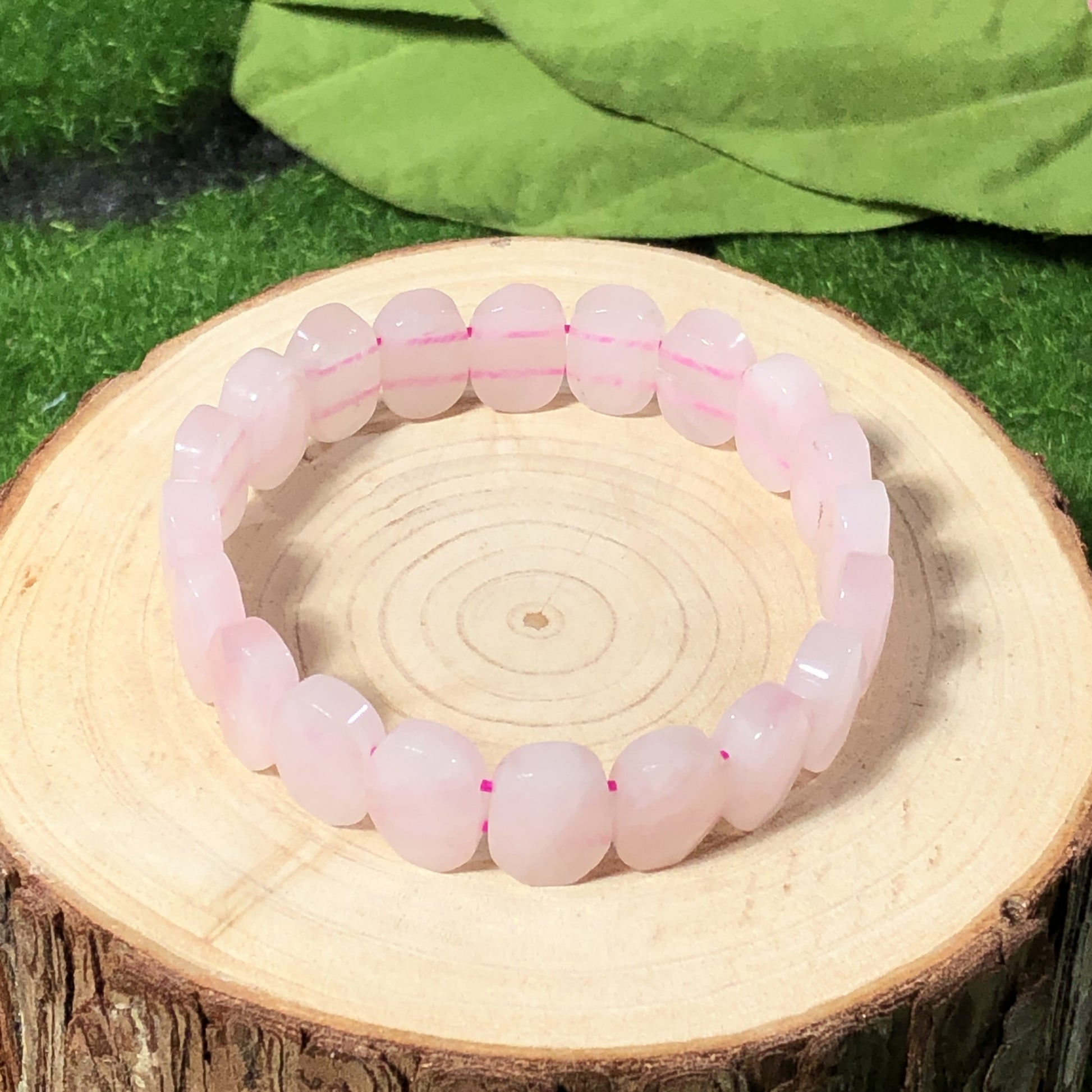Ovales Armband aus natürlichem Rosenquarz, handgefertigt.